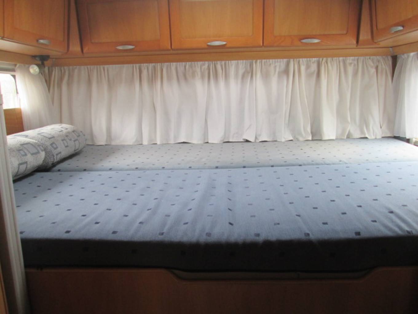 Sleeping is via Rear Fixed Double Bed. The Drop Down Overcab also provides a Very Large Comfortable Double. The Dinette Bench Seat could also be used as a Single