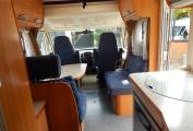 Driver's and passenger seats swivel to give dining and lounging for up to six persons in comfort.