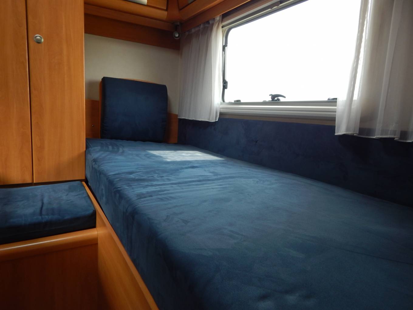 Fixed length ways raised single beds to rear, double over cab pull down bed. Mattresses are firm and the whole motorhome smells fresh and clean throughout.