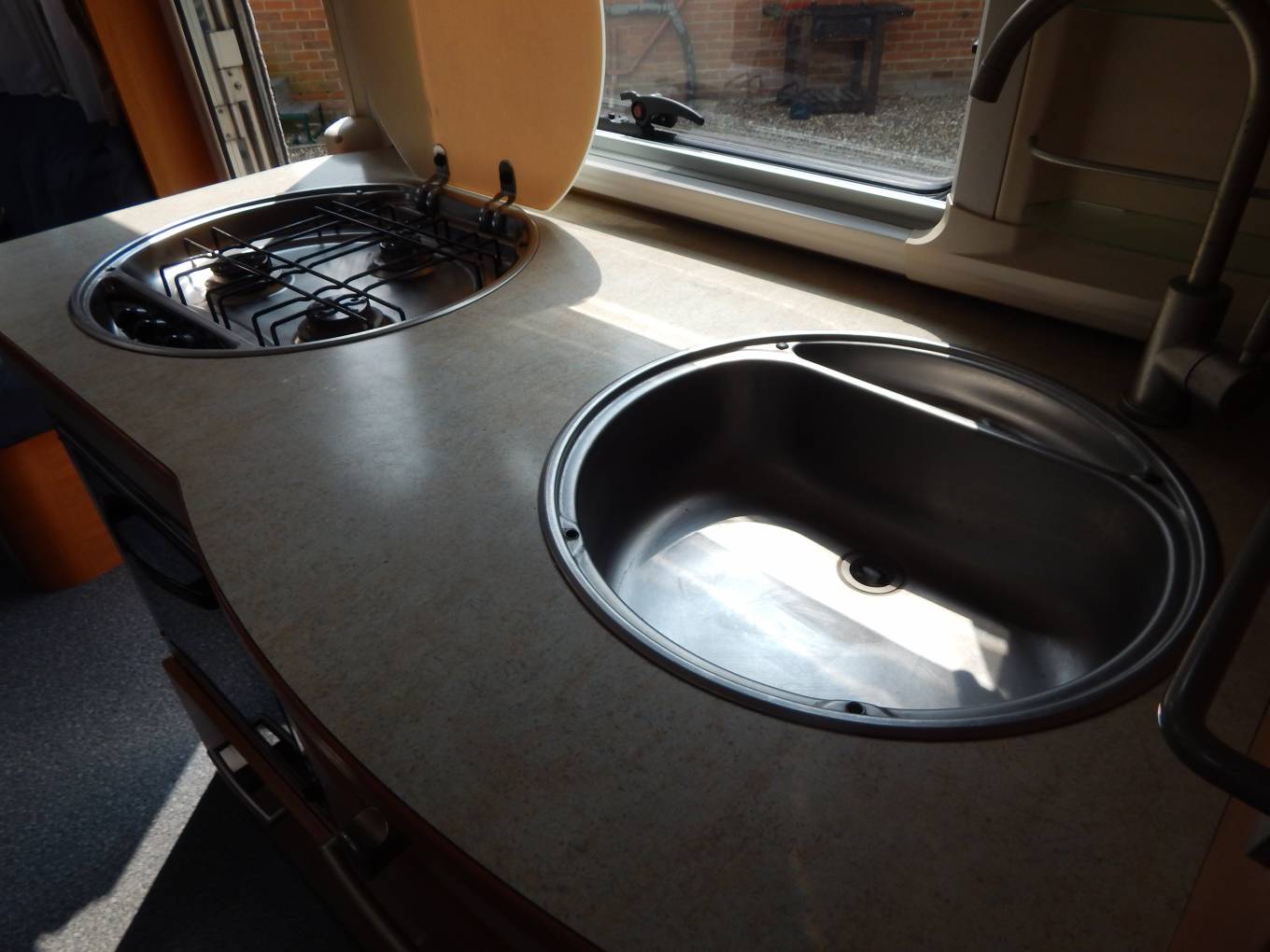 Oven grill and hob. Extractor fan works on both 240 and 12 volts. Additional 240 sockets installed and 12 V take off for recharging tech in cupboard to complement the cab fittings. Tall fridge freezer on 70 to 30 split, operates on 12, 240 and gas.