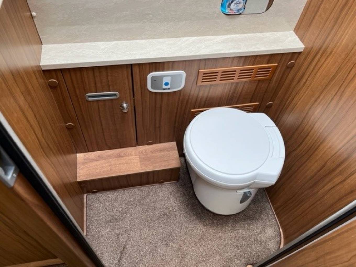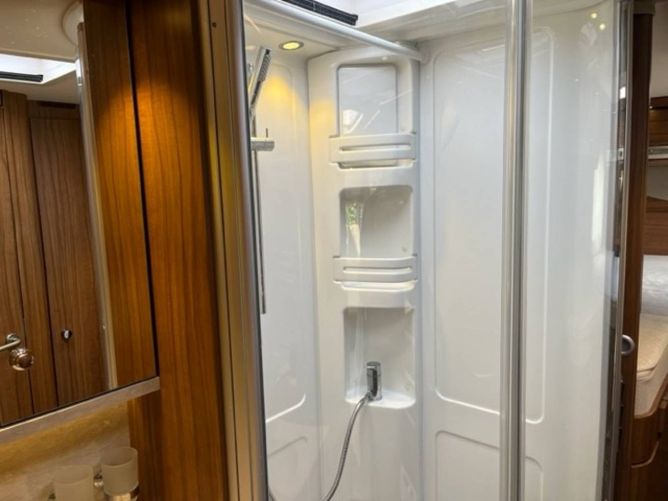 This vehicle benefits from a Separate Shower Cubicle and Washroom with Toilet and Washbasin.