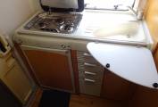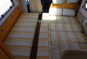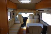 Rear kitchen, rear side washroom, large central lounge dining area and over cab double bed .