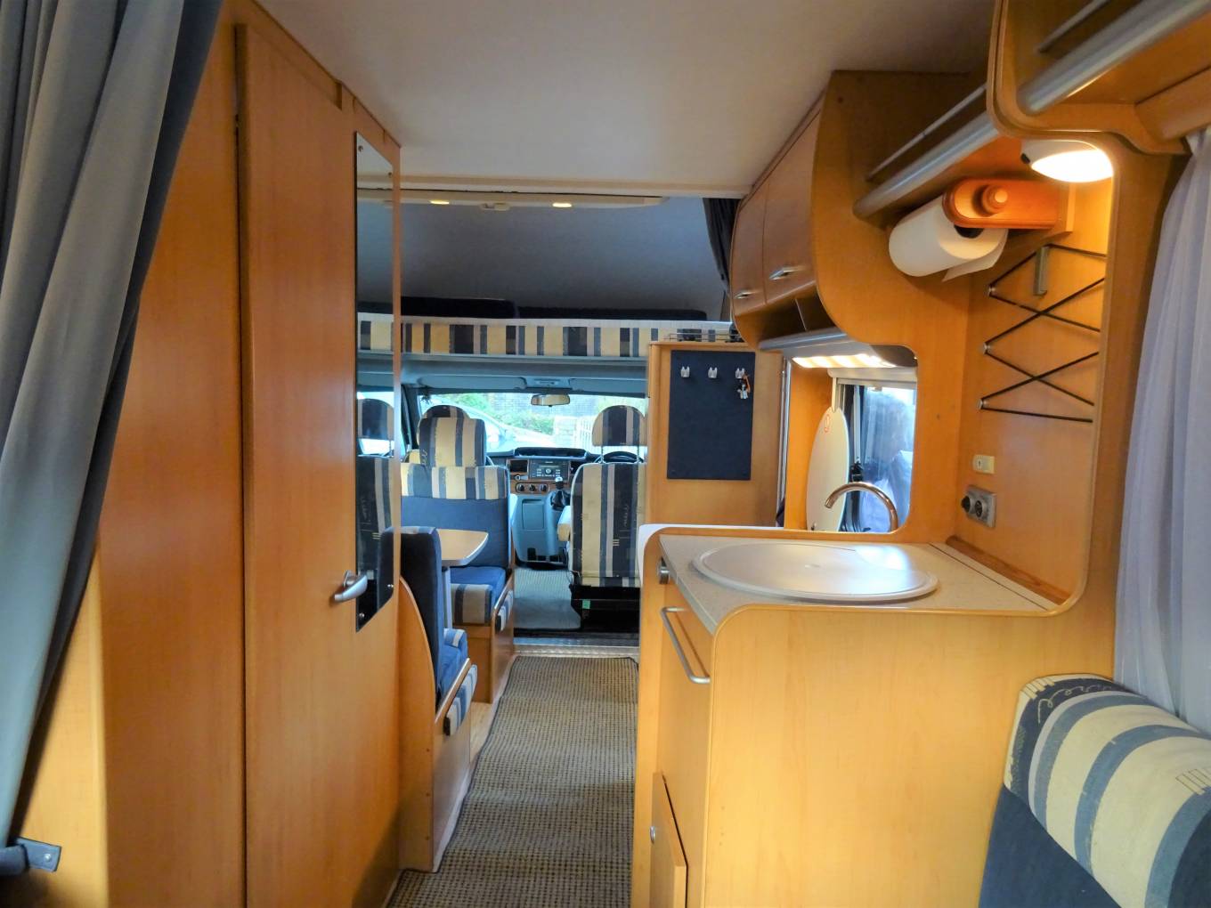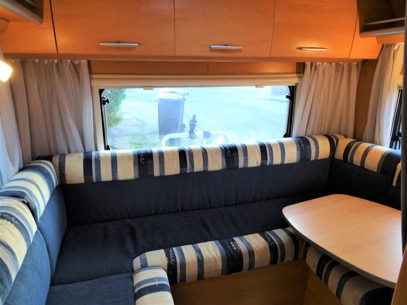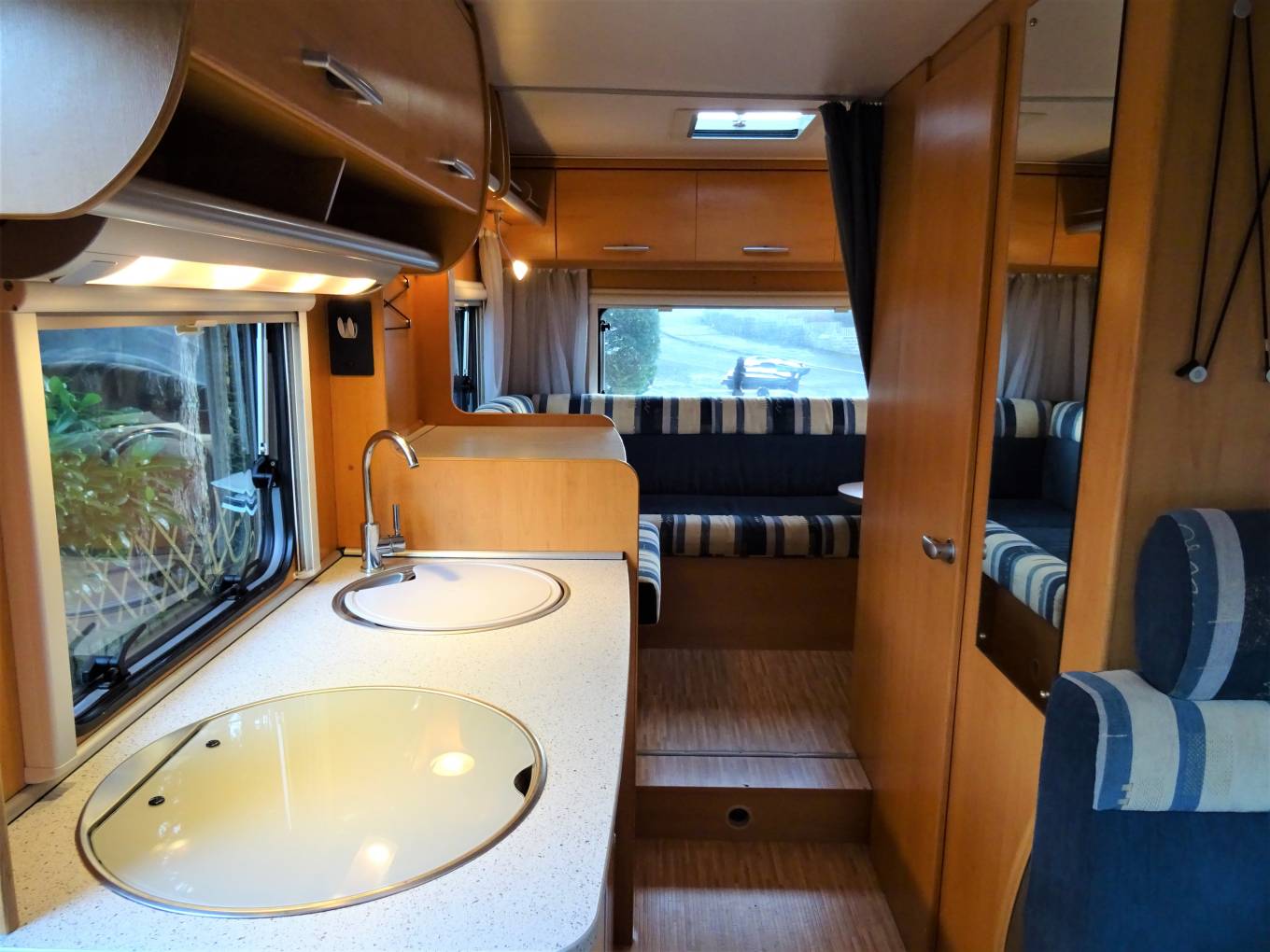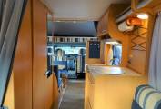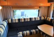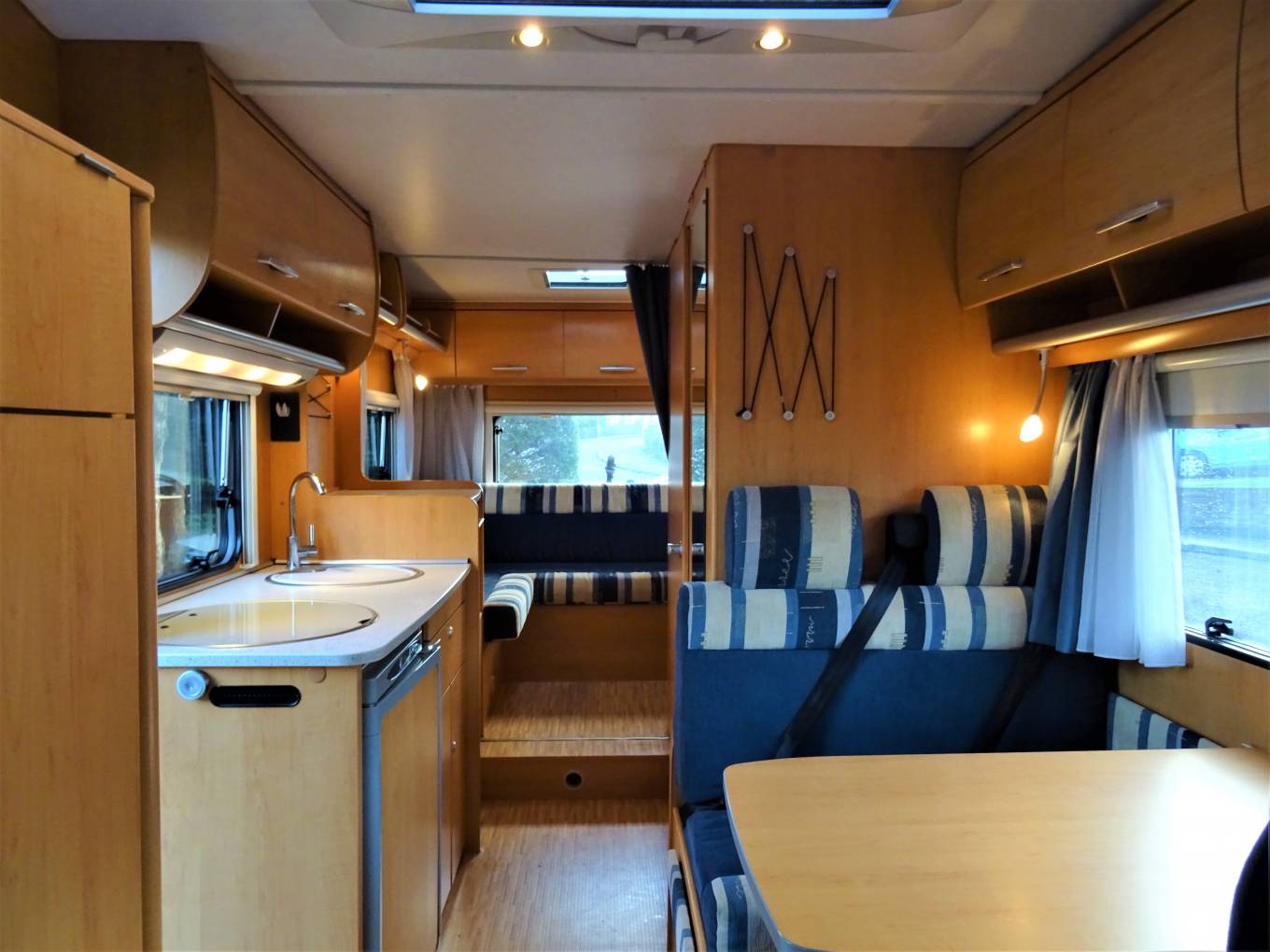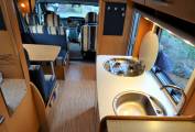 Towards the rear of the MH can be found a relaxing L shape lounge with a removeable table. The rear lounge can be converted into a double bed , as can the central seating area which can also be a double bed and in addition there is a double over cab bed.