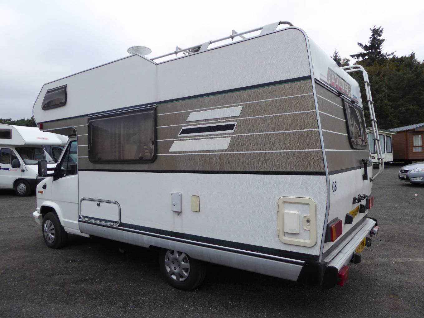 Call with any questions on 01423 609985.This is a Hymer Camp. We believe it to be a Camp 55, which can easily sleep 5 people and the current owners have had 6 people sleeping in it. It was first registered in 1990 and then in the UK in May 2008, with 266,398 kms or approx 165,166 miles. It is left hand drive, built on a Peugeot Talbot chassis, has an extendable bike rack at the rear, electric hook up point, gas locker and manual step. Other features include air suspension, assisted power steering, awning and the tyres are all in good condition. At the rear is the kitchen with a hob with 2 gas burners, next to which is a sink and then underneath is the fridge freezer. A microwave is also included in the sale. In the washroom there is a shower attachment, with tap that provides hot and cold water, toilet, sink and the lights have that distinctive Hymer look and feel. In the main habitation area there is a long sofa on the nearside and a dinette are on the offside. Both can be made into double beds although it is probably best that the dinette is a double and the sofa remains a single. In the cab, there is a radio, CD player, reversing camera, 2 full seatbelts, 5 speed manual transmission with the gear lever sited on the steering column as per a Citroen 2 CV, which guides the 2482cc diesel engine on its way. It has a an overcab bed and leisure battery with isolator switch. It has travelled all over the UK and Europe, drives really well from the test drive I undertook and can be viewed rear Easingwold in North Yorkshire. Part Exchanges welcomed on this vehicle, for further information and photos please call us on 01423 609985 quoting Reference 82796.