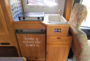 offers a 2-ring gas hob, sink with hot and cold water and 3-way fridge with