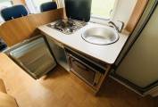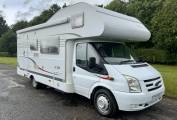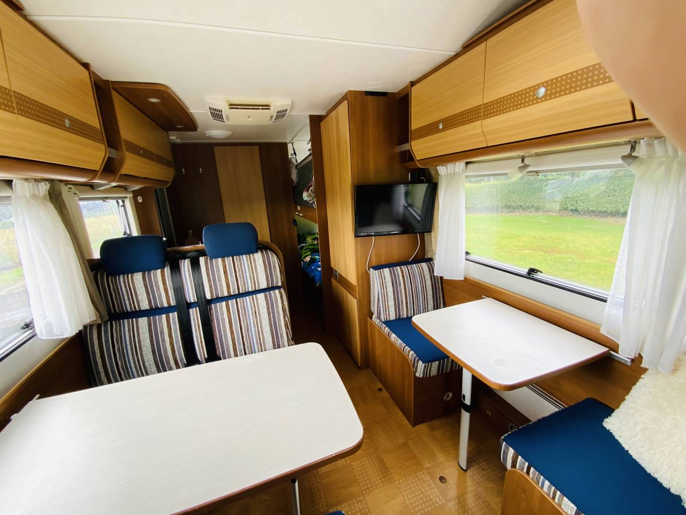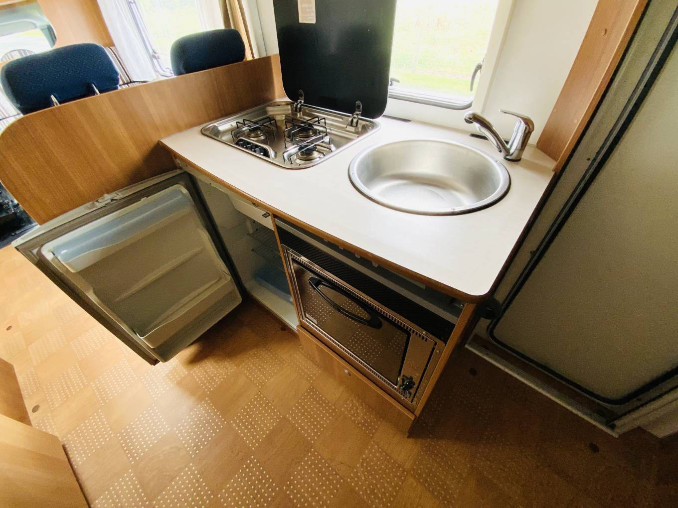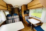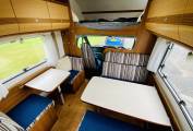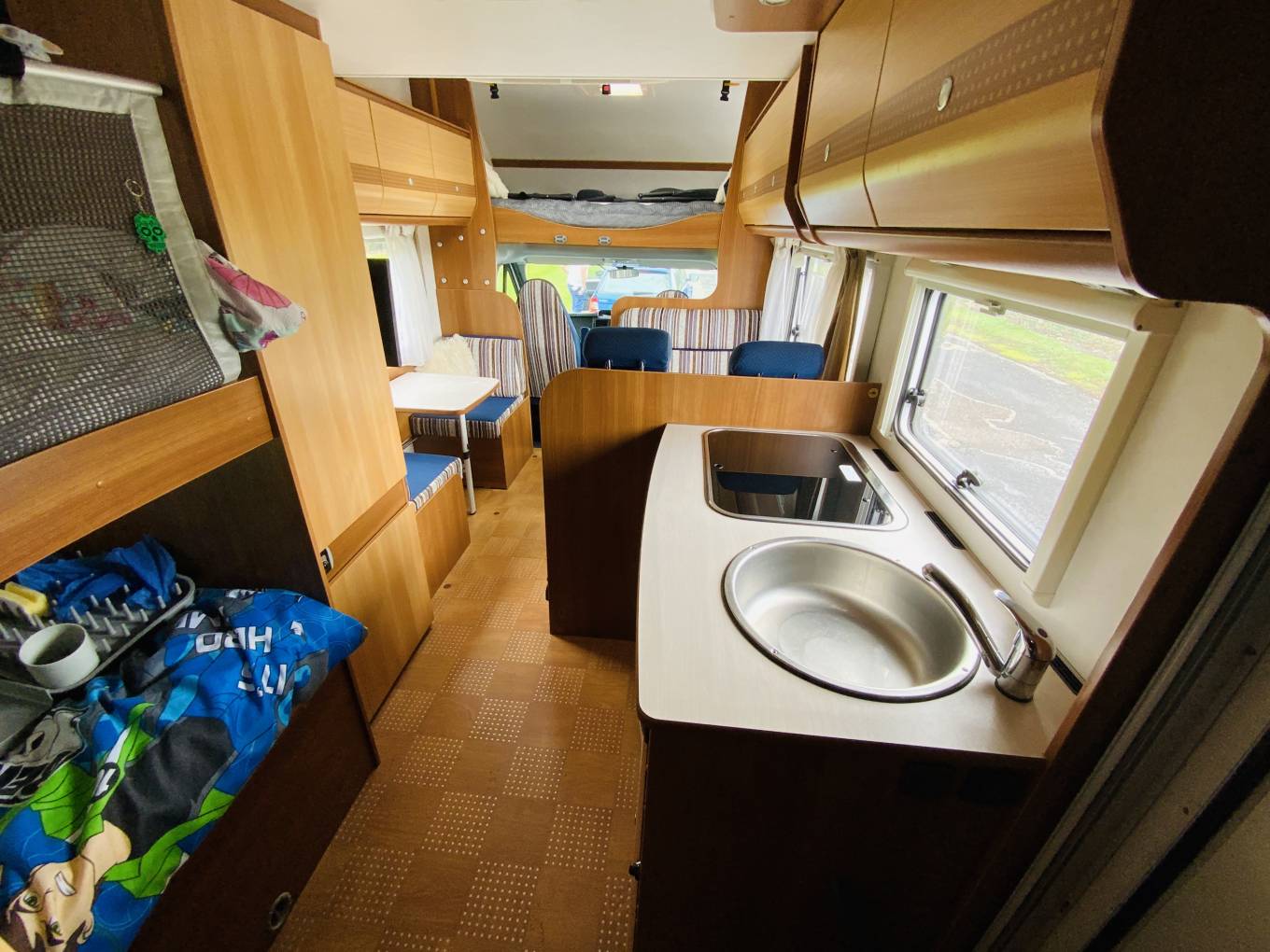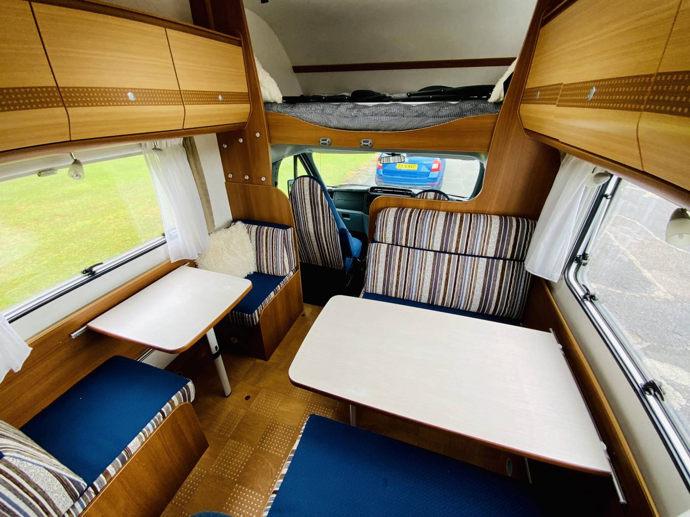 Here we have an extremely well presented example of this very desirable 7 berth family Motorhome, over the cab is a generous double bed that is easily able to sleep 2 adults. In the centre we have a large dining area with a single dinette that can seat 2 and converts to a good sized single bed opposite a double dinette with two 3 point seat belts and two lap belts that can seat 4 and converts to a small double. Towards the rear of the vehicle we have the kitchen area which houses a sink, smev oven, generous fridge with ice compartment and 3 burner hob. At the rear of the vehicle are two bunk beds that are large enough to sleep 2 adults beside the washroom that is home to a cassette toilet, hand wash basin and shower.