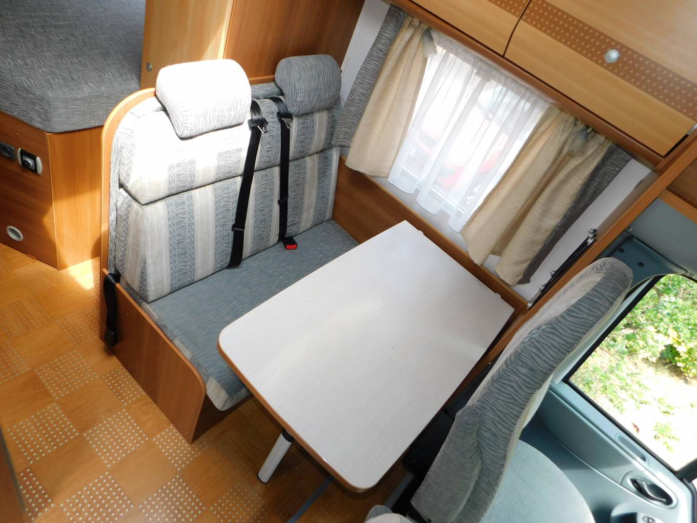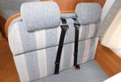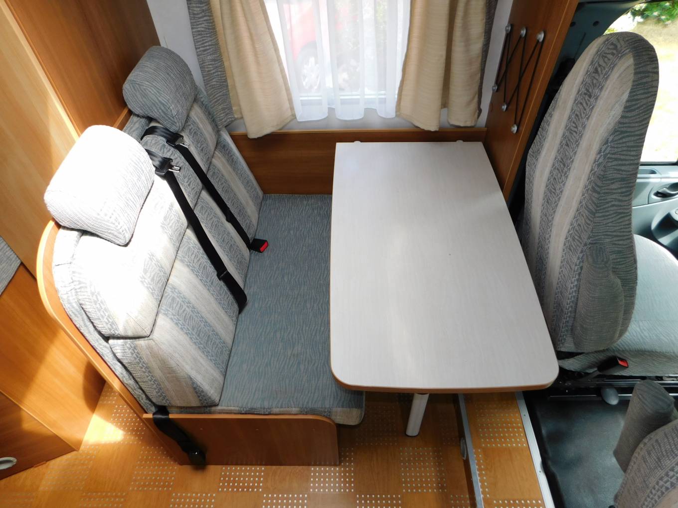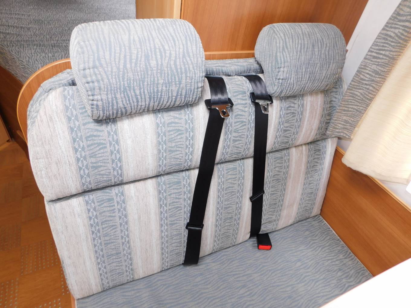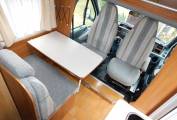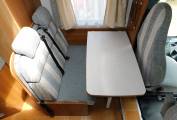 Enter using the electric step and you have the dining and lounge area in front of you, with two forward facing seats that both have 3-point seatbelts, the cab seats also swivel to face the dining table, plus a large sunroof floods the area with natural daylight and fresh air.