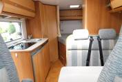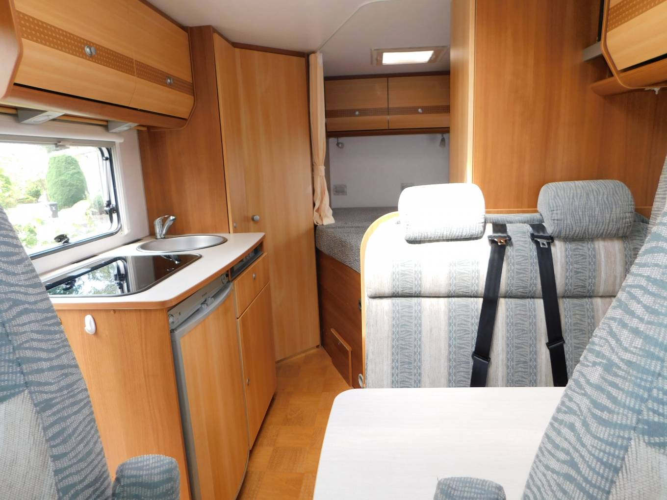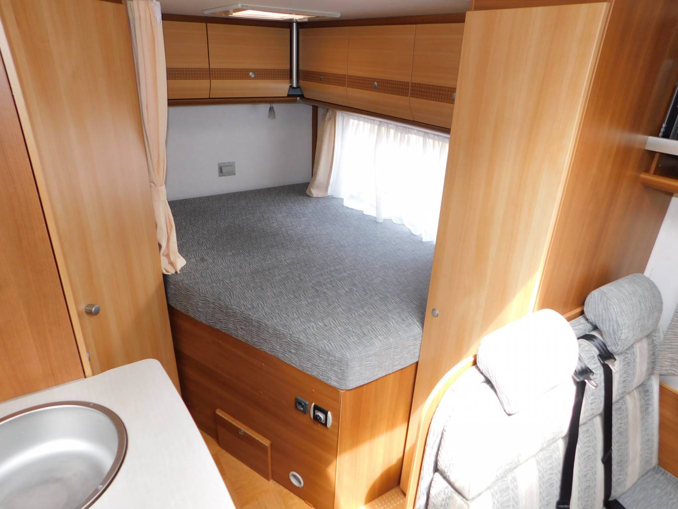 The main feature is the fixed double bed, which raises to reveal a large storage area that can also be accessed via an external locker door, the gas struts will need changing or a re-gas if you require it to raise with assistance. Upper aircraft style lockers provide additional storage.