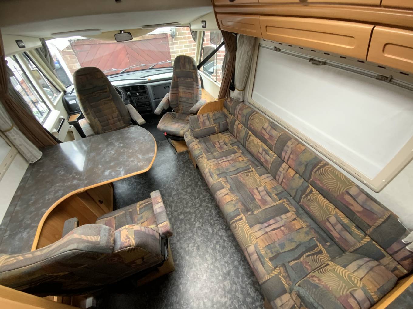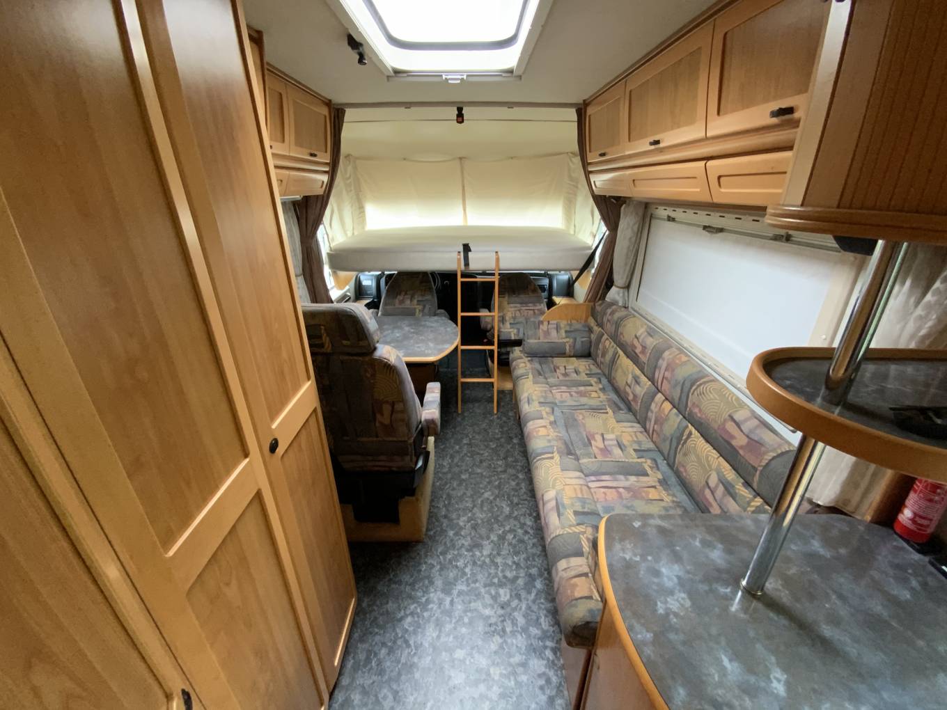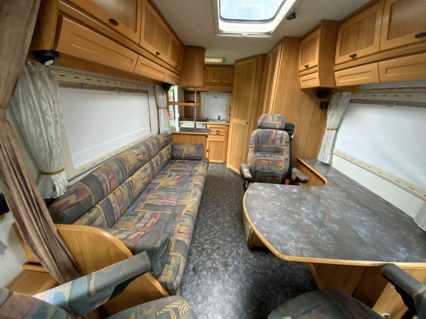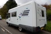 Motorhome Depot presents a 1997 Hymer E510. This 3 berth, A class motorhome has a 2.5 litre Diesel engine with a 5 speed manual gearbox and is based on the popular Fiat chassis. Starting at the front of the motorhome, we have an excellent sized drop down bed, moving towards the rear we have a comfortable side bench that also doubles up as a single bed and this provides the final of your 3 berths. Across from this is the dinette that includes a travelling seat and the drivers and passenger seat swivel to make this a generous family area. At the rear, we have the wash room area that includes vanity hand wash, Thetford toilet and shower enclosure, adjacent to this is the kitchen that consists of 3 burner gas hob, 3 way fridge and hand wash basin.