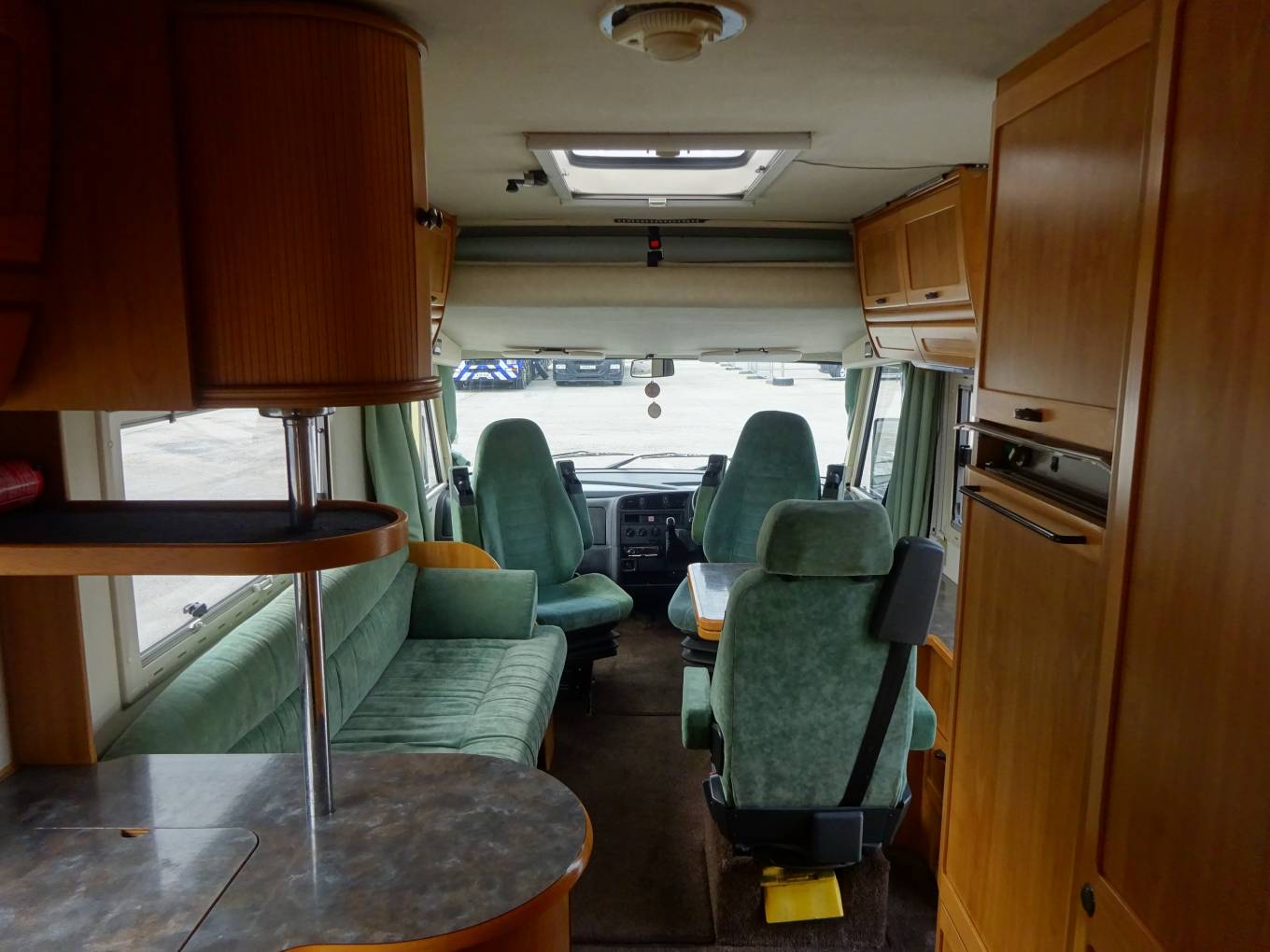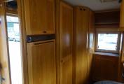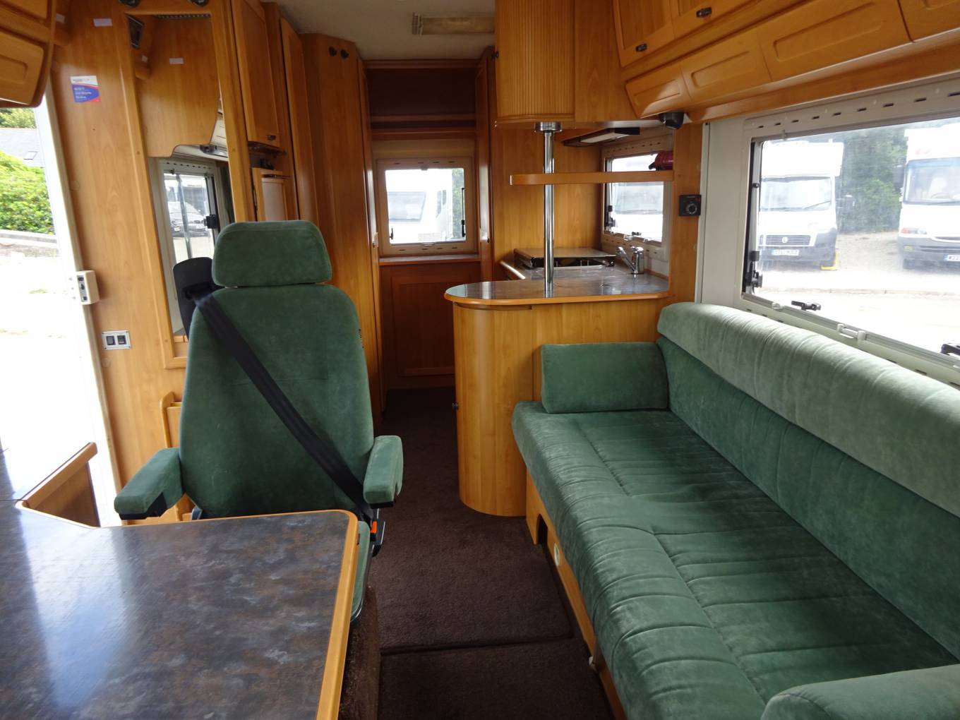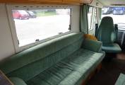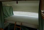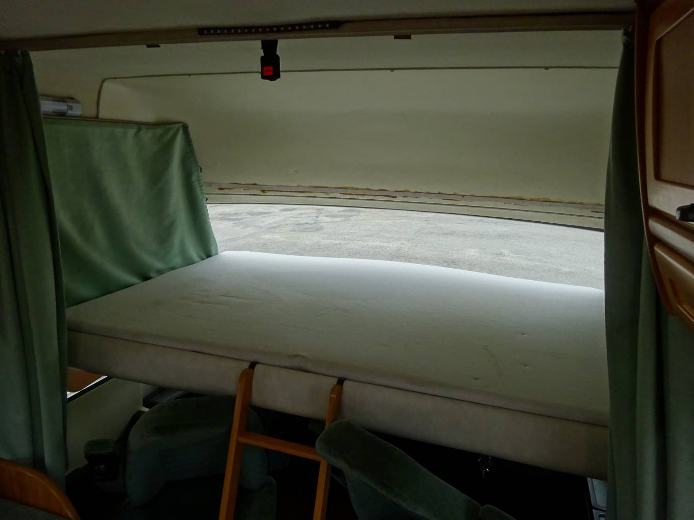 Drop down bed over cab, single bed in lounge area, 3 belted travel seats.