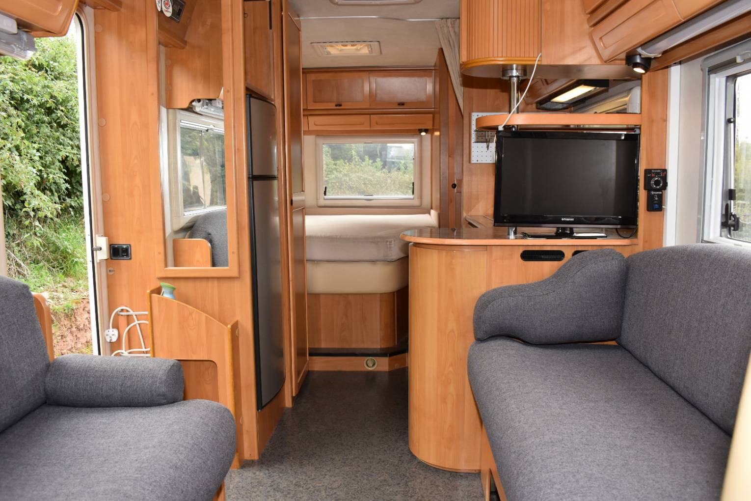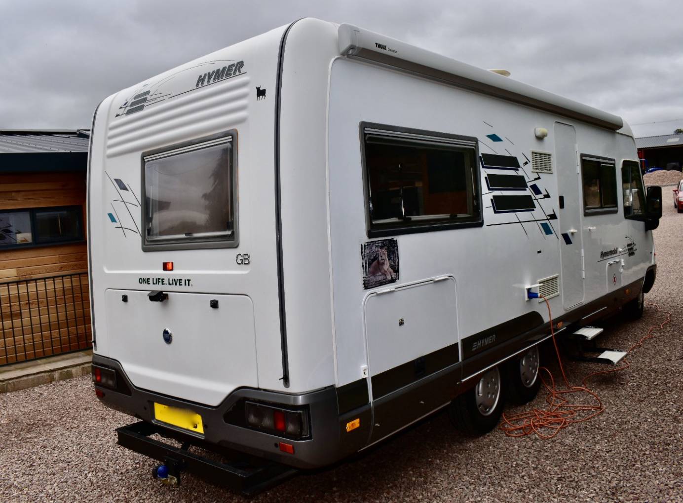HYMER E690 TAG AXLE 5/6 BERTH MOTORHOME WITH 2 SEAT BELTS, NEW AIR CON UNIT IN SUPERB ORDER THROUGHOUT. What a vehicle this low mileage Hymer is with its open plan accommodation providing plenty of room for everyone with the added bonus of a brand new air conditioning unit and twin television sets. Upon entering the accommodation you are greeted with a very generously sized lounge/dining area complete with 2 side sofa's with a capacity to seat 6 diners with ease. Further along the kitchen is fitted with a large, modern Dometic fridge freezer, a microwave, twin sinks, gas hob, extractor fan and ample storage. Located at the rear is a French bed with vanity unit, wardrobe and a shower cubicle with Thetford toilet. Further sleeping is provided by way of a double sized drop down over cab bed and the 2 side sofas. Externally, the vehicle is equipped with a brand new Thule Omnistor awning , an electric entry step, large garage, heavy duty tow bar and a cleverly concealed integrated bike rack. Built to Hymers legendary high standards this vehicle has stood the test of time remarkably well and still remains the perfect companion for comfortable breaks away or longer extended European touring and with its capacious garage you can take all the necessary gear with you and even tow a car too. Lots has been spent to keep this Hymer up to date and with the addition of the air con unit, solar panel, fridge freezer and new awning it's all ready to go. Based on the Fiat Ducatto chassis, recent major service, habitation check and set of 6 new tyres. Rare find, for further information and to arrange a viewing please contact Simon on 01432 488 996. Part exchange welcome, we take motorhomes, campers, cars, boats & caravans