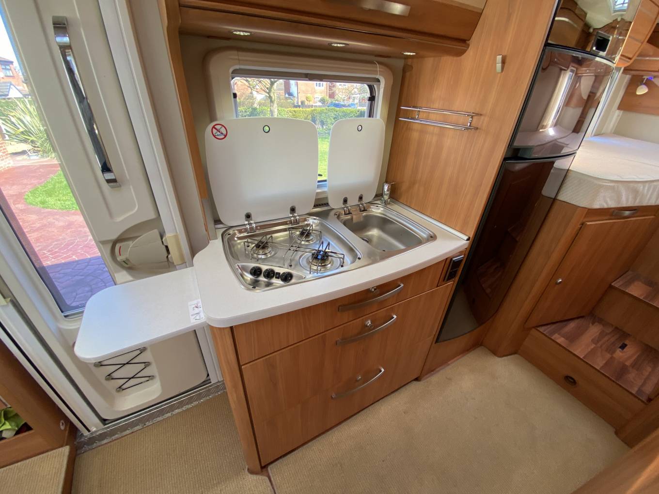 Extras include Avtex TV and soundbar, a new tow bar, gaslow system, bbq point, extra plugs in the garage and a fabulous £6,000 AL-KO HY4 automatic chassis levelling and weight distribution system. In the huge rear garage there is a full size spare wheel and enough space to store bikes etc. This motorhome has been up-plated to 3,850kgs giving an extra 350kgs for all equipment etc so you would need a C1 licence.