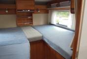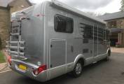 Hymer Exsis i 562, this is a beautiful 4 berth with full habitation and service history, one owner from new and just 26,000 miles on the clock. It is a left hand drive and is built to the usual high standard you would expect from Hymer, it is excellent condition inside and out. At the rear are 2 fixed single beds under which is a large garage with 2 access doors, in the centre is the kitchen area and a good sized bathroom. At the front is the lounge area with 2 captain seats and a pull down double bed. It comes with 4 Seat Belts, Cab Air Con, Rear Camera, Cruise Control, Sat Nav, TV, Awning, Bike Rack and 2 leisure batteries. It also comes with gas bottles,mains lead and many more extras, please call for more photos and information.