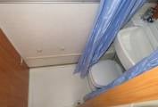 The Hymer Exsis is extremely comfortable to sleep in. There is a very large pull down double bed above the living area and the lounge area also makes up a further double below. The is good sized rear washroom with Thetford flush cassette toilet, fold down sink and wet room shower and curtain. At the rear you also have a good sized wardrobe with hanging rail.