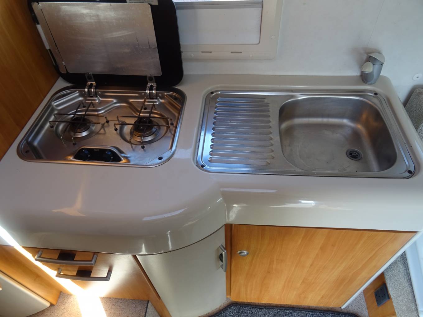 with a drainer, a Dometic fridge with a freezer box and a combined oven and grill.