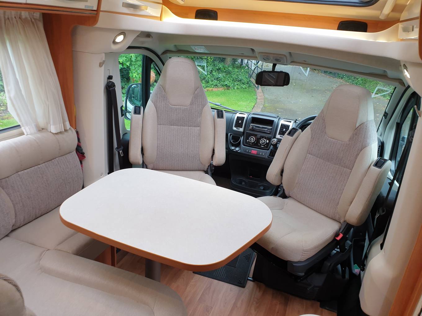 the 2 swivelling captains chairs you could easily seat 4/5 people for eating