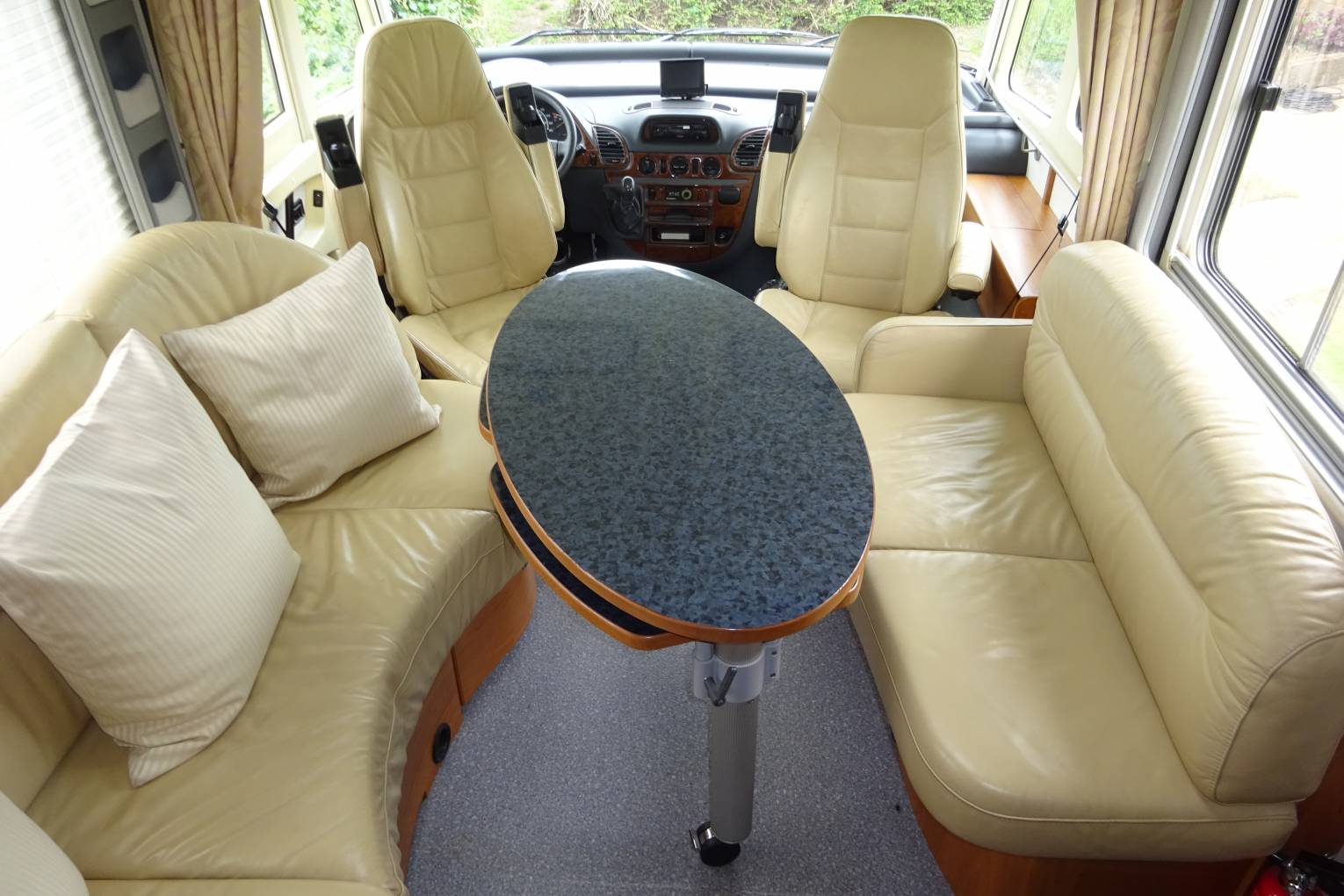 This motorhome is the epitome of luxury and has been maintained to a high standard inside and out. The living area and driver seats are a cream leather, making a beautiful spacious seating area. A well equiped kitchen including cooker, hob, dual sink and a full size fridge freezer really makes it home from home. It is fitted out with two large double beds one to the rear and a drop down bed over the cab. The extras it is fitted out with include cab and habitation air conditioning, Satellite tv, underfloor heating, reversing camera, tow bar, and coming with an omnistor safari room. With the large rear garage and lots of storage compartments inside you can take everything you might need with you.