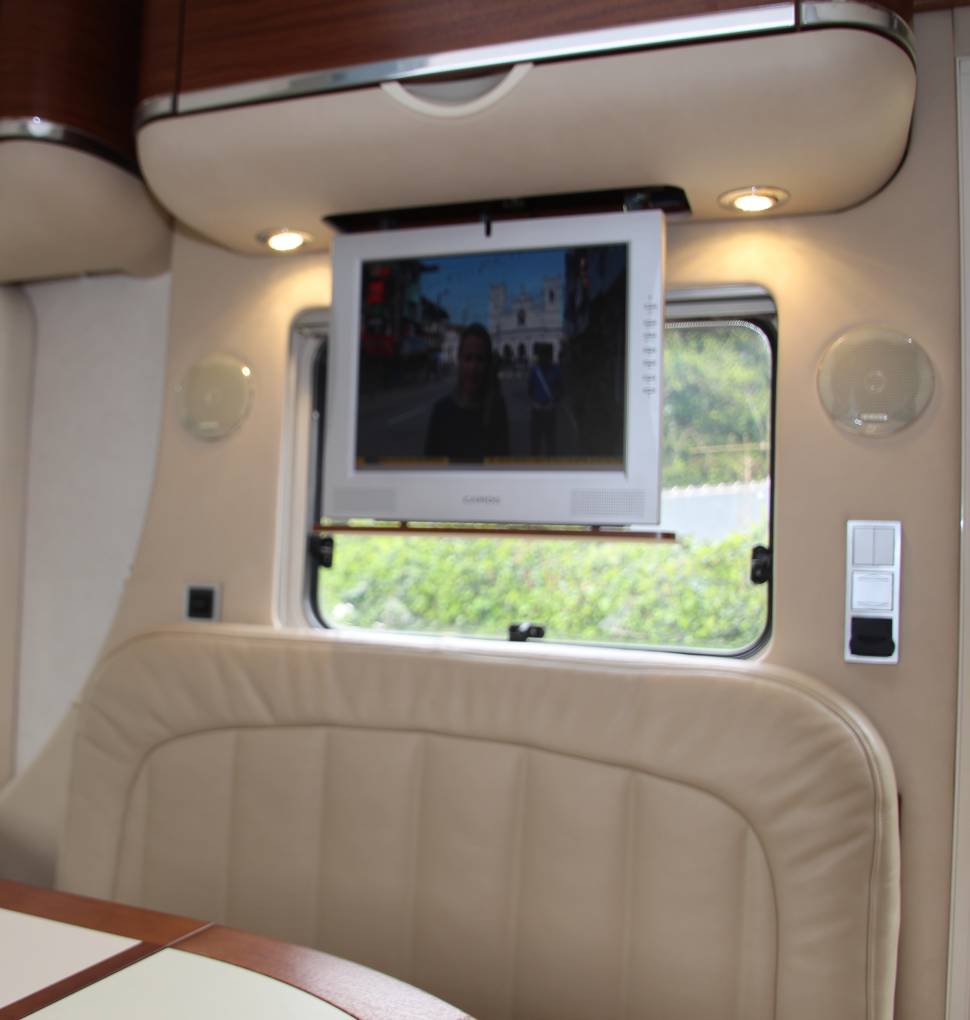 Based on the Mercedes Benz 518 CD chassis with V6 turbo diesel engine and automatic gearbox. In the cab we have Multi function steering wheel, Cruise control, Two reversing cameras, Double DIN head unit with Car Play DAB radio app mirroring from phone., Electric main external mirrors, Radio/CD player with speakers in main body, bathroom and bedroom. Outside we have Rear air suspension, large external lockers. Fog lights, Enormous garage with 2 full size doors, 5 meter Omnistore 5 meter awning, Solar panel linked to 2 x leisure batteries, Gas outlet in garage for BBQ, Heating to garage if required, Tow bar. Category 1 Thatcham alarm system. MOT is until 30 January 2021. Current mileage is 43525, last serviced at 39274 miles. Previously serviced at 35218,