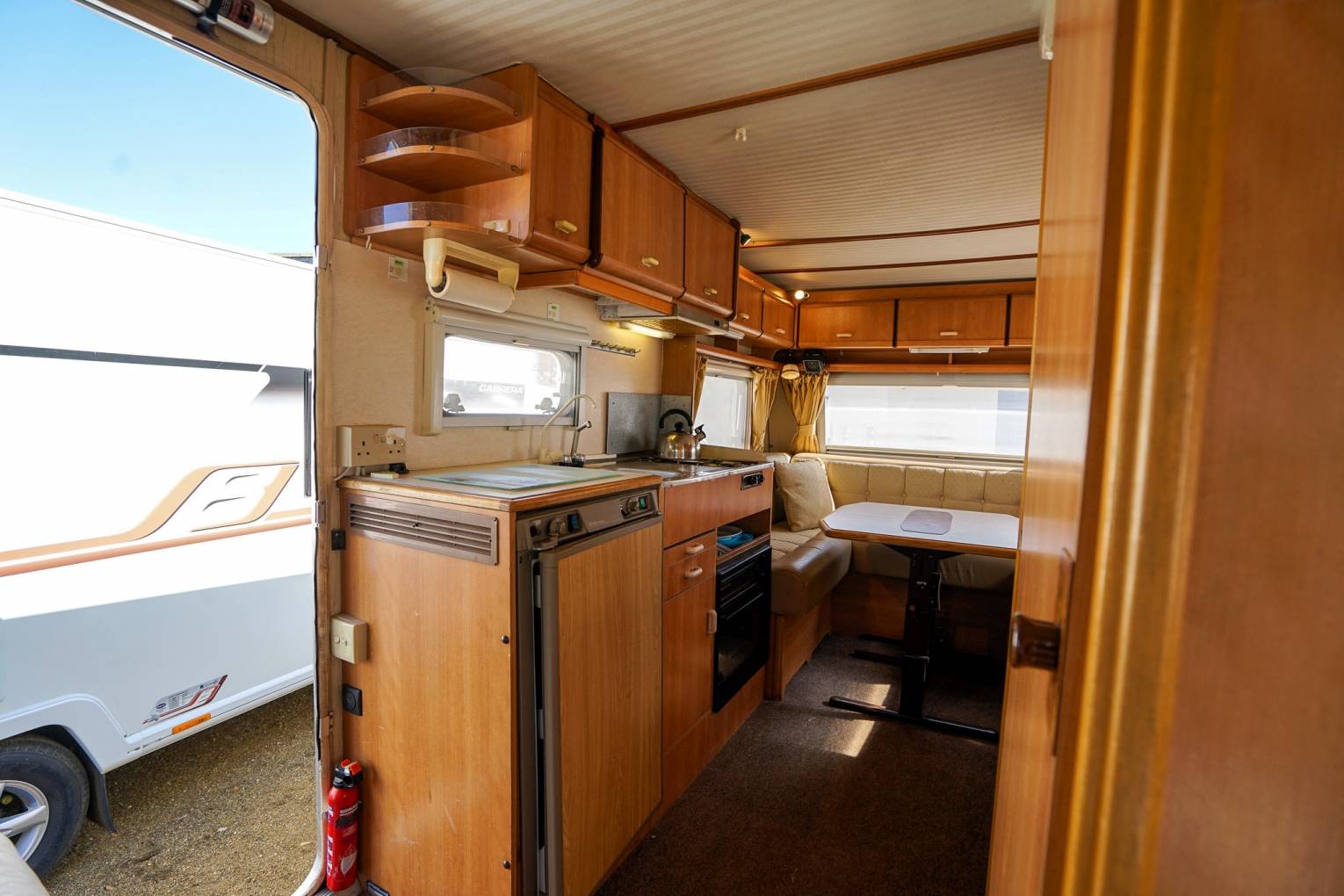 Extractor, 3 Way Fridge with small freezer compartment, 2 x 240V Sockets and a Stainless