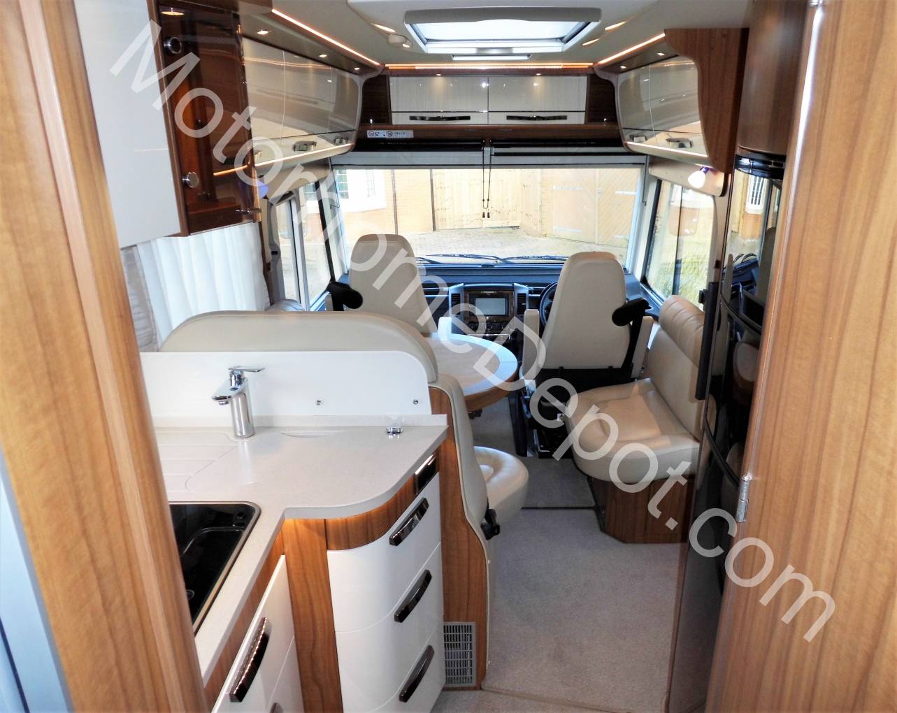 Here we have a luxurious Hymer Starline B690 registered December 2017 on a Mercedes Benz chassis. 519 cdi -140kw-190hp Euro 6 engine upgraded to 5.3 tons with 58067 Hymer Starline Comfort package and 57962 Power package – Automatic gear box, 7G-TRONIC PLUS. RHD with only 3669 miles. Cab and habitation air conditioning and Alde warm air heating. This vehicle requires a C1 licence to drive