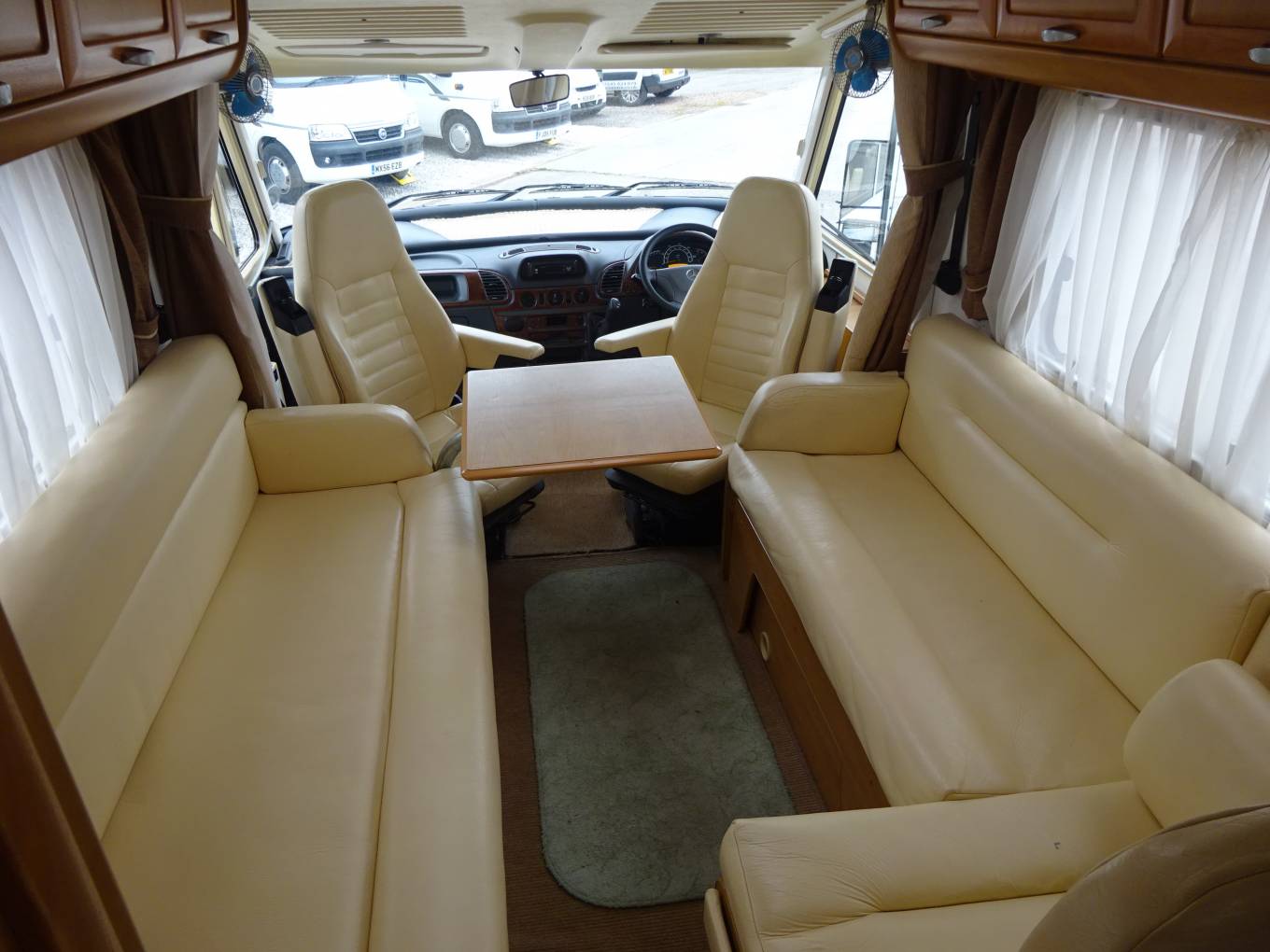 This 4 berth model with six seat belts has a massive lounge area with swivel captains seats in cream leather, capable of seating up to 10 people.