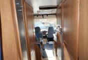 The internal layout consists of twin lounges, a U-shaped lounge at the rear and another lounge towards the front of the vehicle with twin two seater sofas. In total there are five travelling three-point seat belts plus one lap belt so this Hymer will sleep six people in comfort and you can also travel safely with six people on board. The rear lounge has triple aspect windows and a skylight so this is a lovely light and airy spot to enjoy a meal or drink after your day's activities. There is a small adjustable table that can be removed and stored away when not in use. Above there are numerous lockers providing plenty of storage space at the rear.