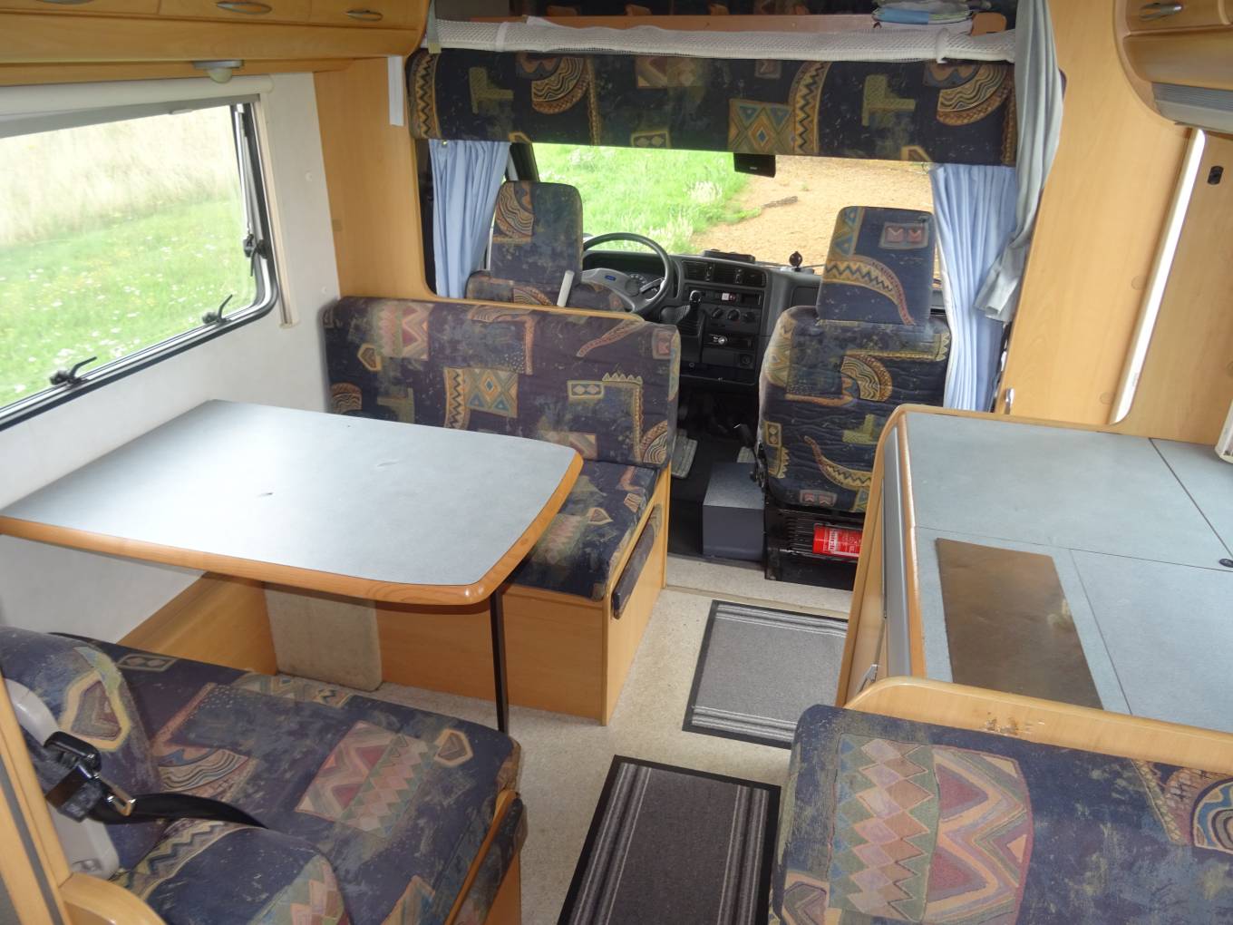 1998 Hymer Swing Left hand Drive, Registered in 2002 in the UK 4+1 berth coach built motor home has a 2.5 litre diesel engine with a 5 speed manual gearbox MOT 04/06/2025. On entering the side of the motor home you will walk into the lounge dining area. This area also converts into a good sized double bed. There is an above cab double bed with steps and a further small single bed at the back turning this into a good sized 4+1 berth Motor home perfect for families. Turning left into the motorhome there is a kitchen consisting of, 2 gas rings, fridge with a small freezer compartment, sink. To the rear of the motor home there is a washroom with sky light, toilet,washbasin and shower. Beside the washroom is a rear end dining area for 2, giving two separate areas for socialising. Each window has blackout blinds. This motor home comes with many extras: electric cables, cutlery, outdoor chairs, TV, rear mounted bicycle rack. This is an ideal starter Motor home with many extras included. It has got a few scrapes and age related marks and some fading paint please ask for pictures. Habitation report 29/08/2023 and has got a few things need looking at please ask for report.