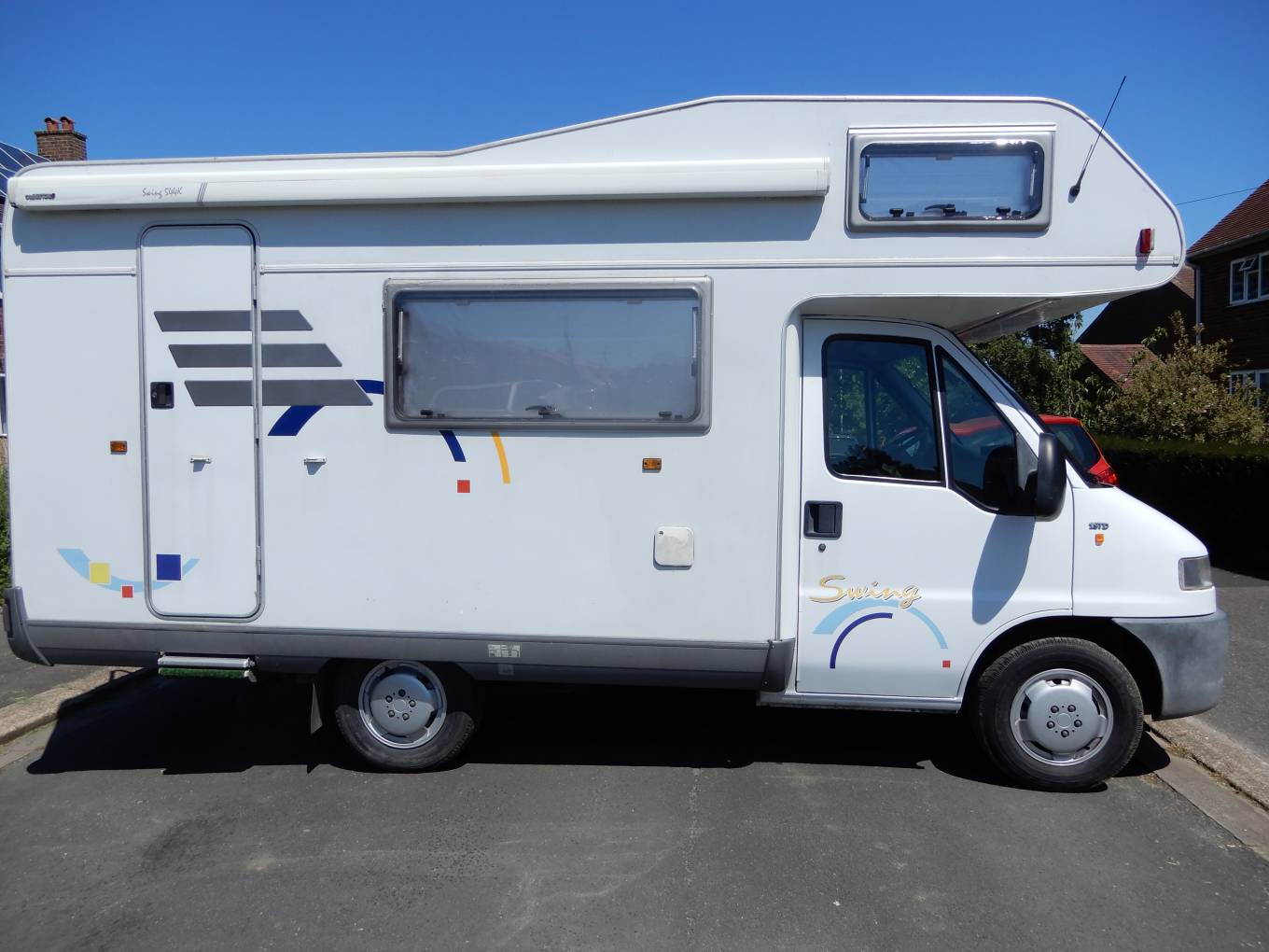 Here you have a Left hand drive, Hymer Swing 544, in good condition and really tidy inside. this 5 berth with 6 seat belts is perfect for first time motor homers with a family. the over cab bed is perfect for the kids or if you want to keep your bed made all the time. both front seats swivel, four seats and a bench seat creates a really large central dining area with a table. There is plenty of storage above and below. The washroom has a cassette toilet, shower and sink with a mixer tap. The kitchen area has a sink mixer tap and a 3 gas hob cooker top, a fridge with freezer compartment. The worktop folds down to create work space. Externally you have a bicycle rack and Awning also reverse sensors. Also comes with European headlamps.