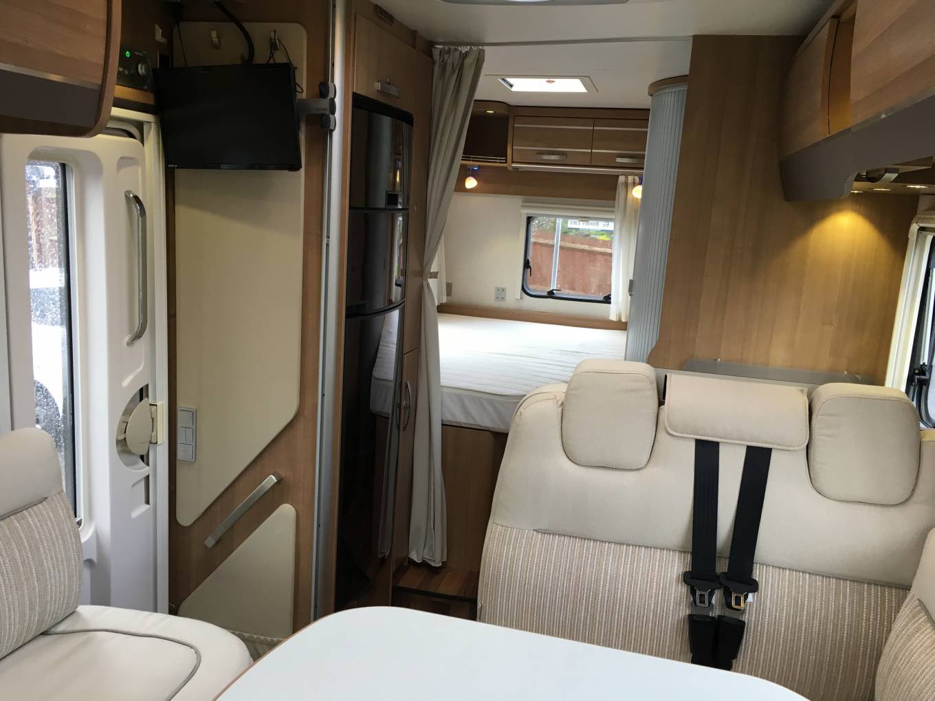 The generous fixed rear double bed is at the rear and the bed rises on