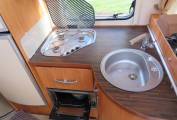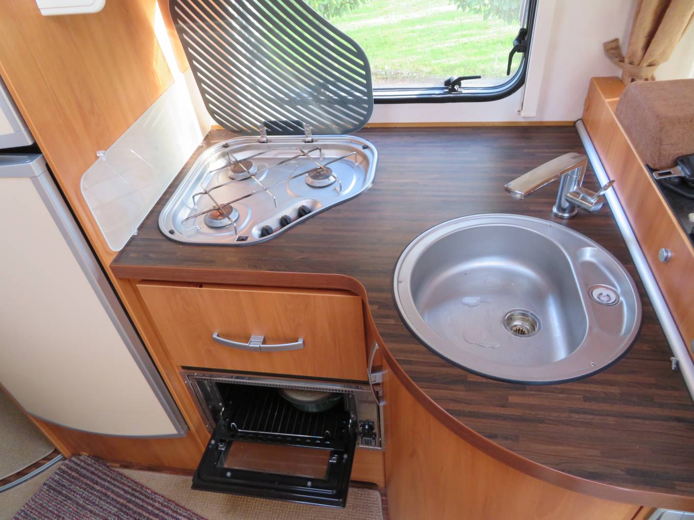 Upon entering through the habitation door the kitchen area is directly in front of you with a 3 burner hob, sink with hot and cold tap, combined oven & grill, microwave and separate fridge and freezer, There is lots of storage cupboards above and below with pull out racks in the lower cupboard, opposite this are the large wardrobes which have lots of space to store all of your clothing, there is a window above the worktop to allow light into the area, there are spotlights and reading lights around the perimeter.