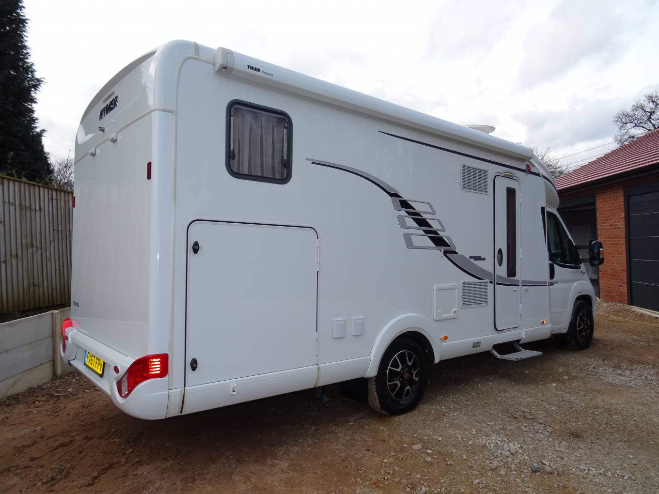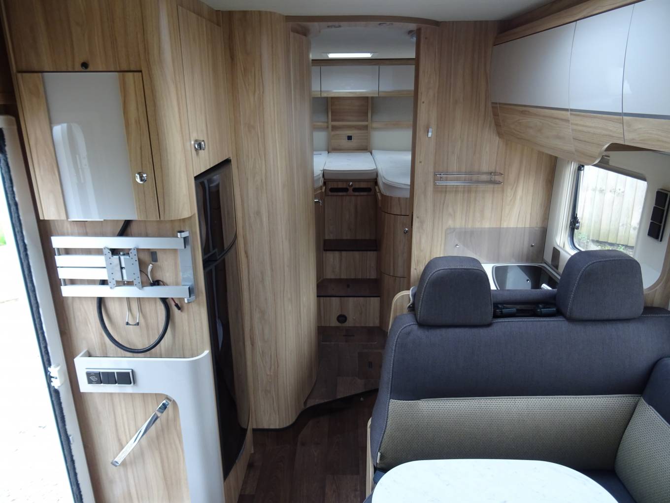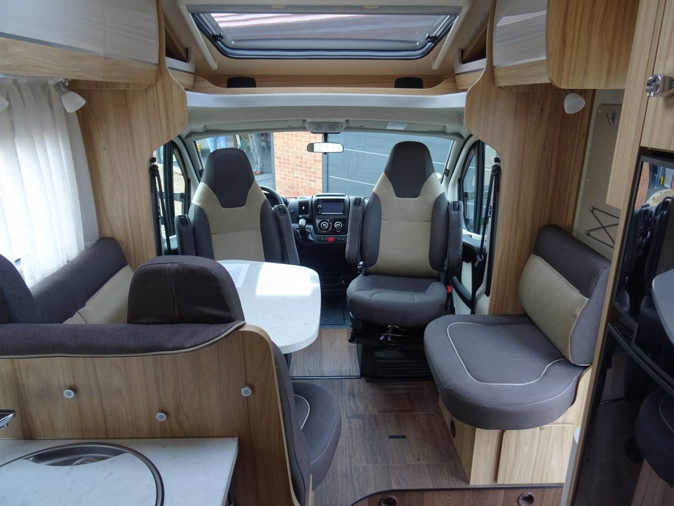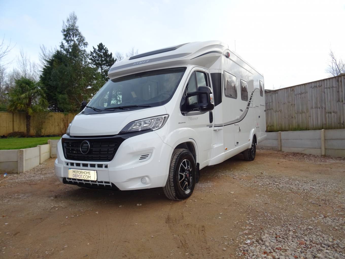 Motorhome Depot Ashfield are extremely happy to offer this stunning Left Hand Drive 2018 Hymer Tramp T678CL Automatic, 2.3 diesel engine to the market. An incredibly popular layout with rear single beds over a large garage. The motorhome berths 4 and includes 4 travelling seats. There’s a generous size center dinette with a large fridge/freezer and kitchen facilities which include a 3 gas burner hob. The washroom and toilet facilities are separated to either side of the vehicle and the rear of the motorhome can be closed off to provide privacy.