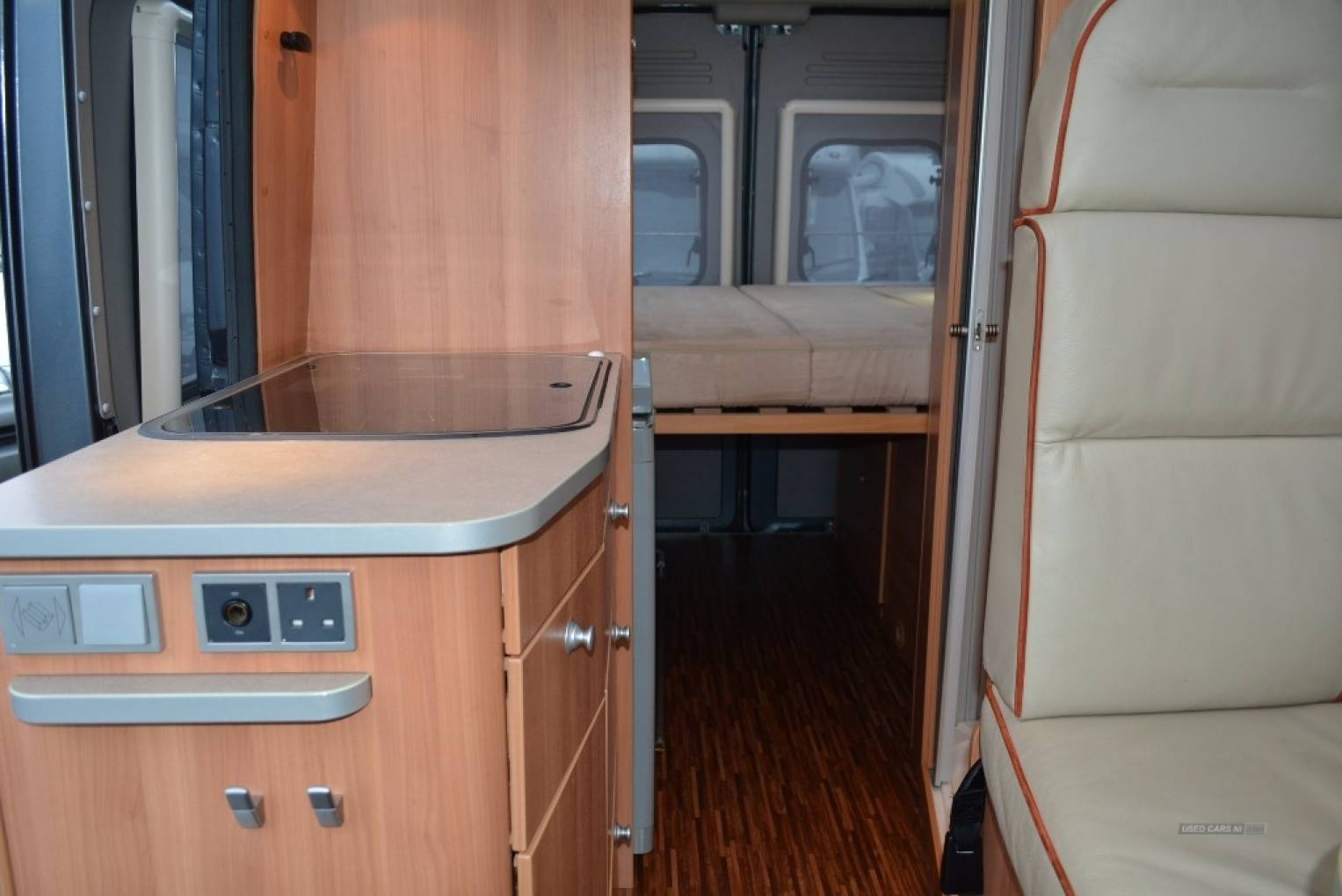 This class leading and very versatile professional van conversion from Hymer Group exceeds all expectations with an impressive specification list and a build quality matched by few. Based on the Fiat Ducato chassis with a 2300cc 130 bhp engine and 6 speed transmission, max weight of 3500kg and overall length approx 5.99 metres. Specification includes rear transverse bed with garage space beneath which folds away to provide usable day time space. A front lounge area provides comfortable and relaxing seating for 4 persons with 2 additional seat belts for safe travelling. Also within this compact chassis Hymer have included a high quality bathroom with Thetford toilet, basin and shower, and opposite sites a luxury kitchen area with ample work space, 2 burner hob, sink and 3 way fridge. This model features the GT Line spec with passenger airbag, cruise control, air conditioning, upgraded stereo unit, pebble leather seating, alloys, awning and bespoke graphics. Sale includes full engine service with cam belt if required, full habitation service, Gas certificate, 1 years comprehensive warranty and full valet. Finance and part exchange are available on request subject to conditions. This Motorhome is not a brokerage sale, and owned and sold by us, Leisure Asset Solutions Ltd, Consumer rights act of 2015 will apply. Please call for further details.