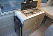fridge, two burner hob and sink, plus a hook on worktop extension. Opposite