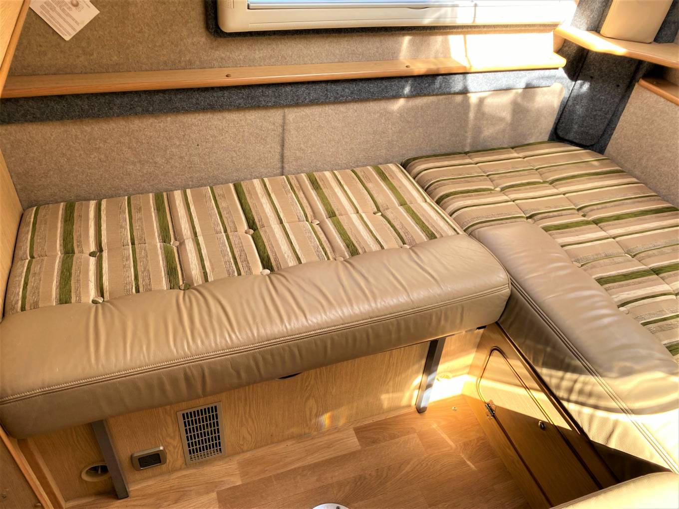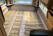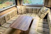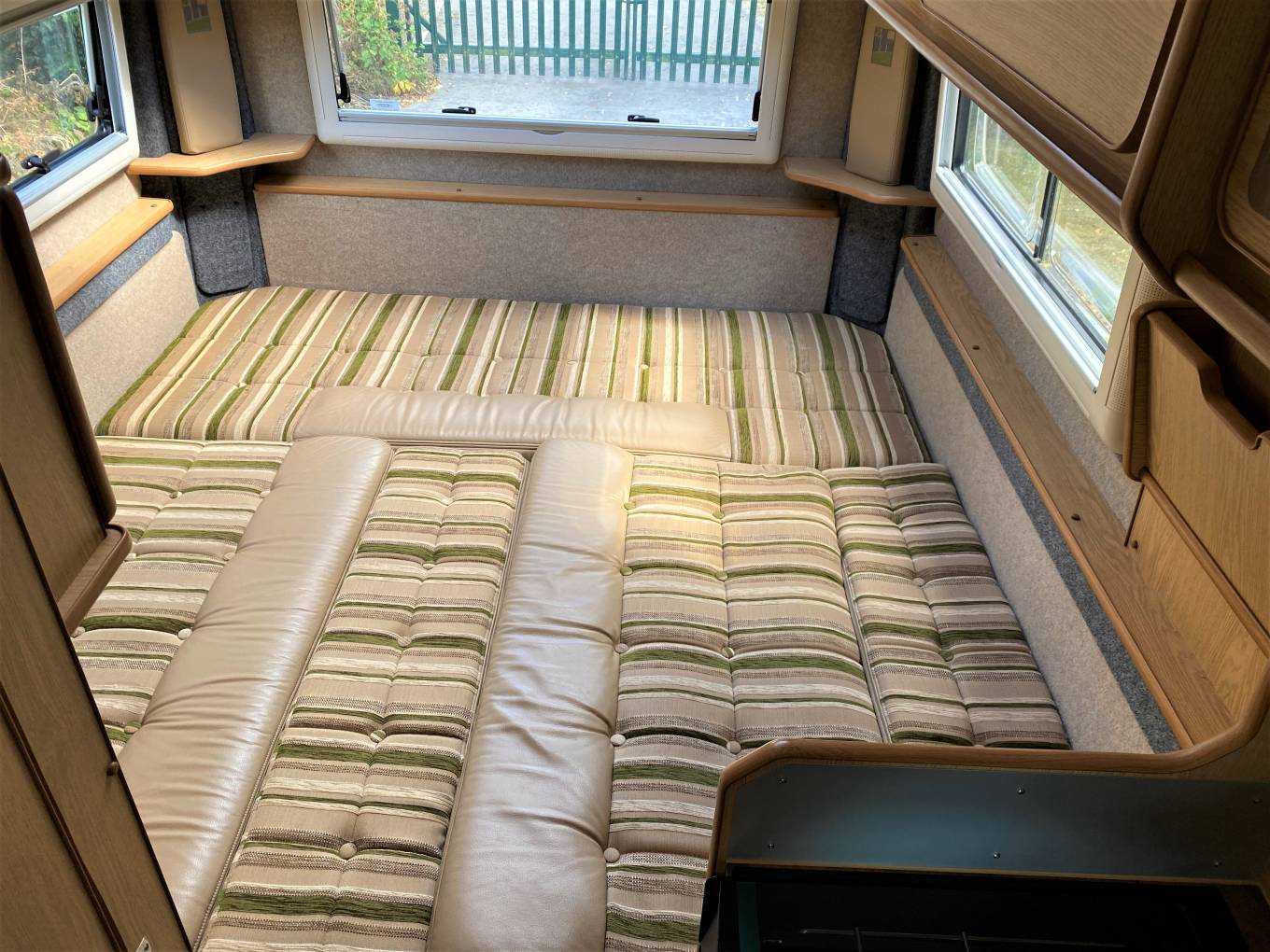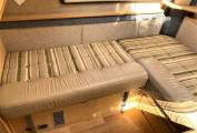 One of the wonderful features of the 630 RL is the lounging and sleeping flexibility of the 6 feet3 inch lounge. It gives you the wonderful seating in the daytime with panoramic views and in the evening the choice of massive king sized or 2 single beds.