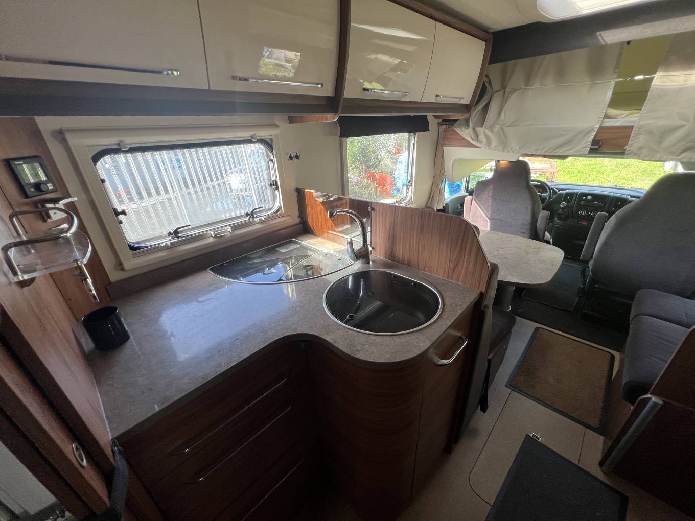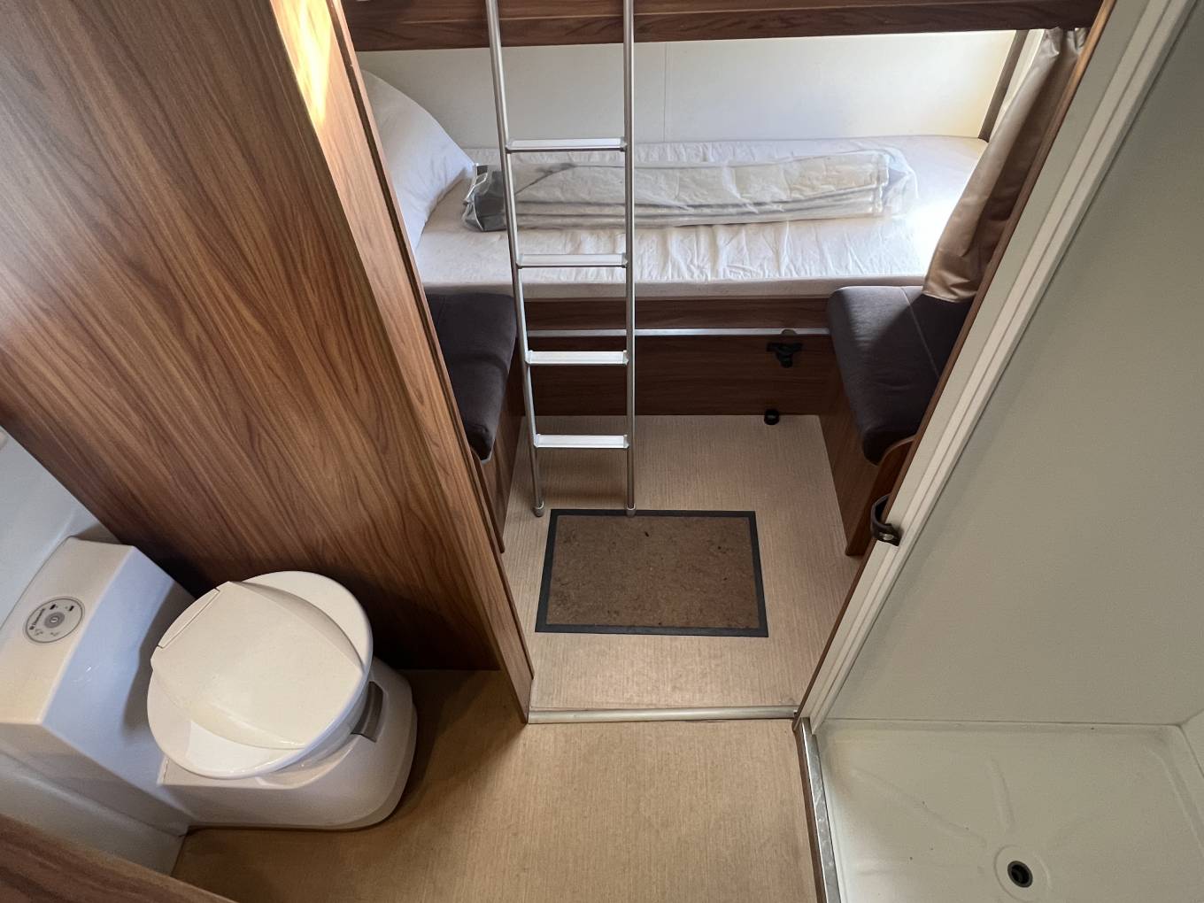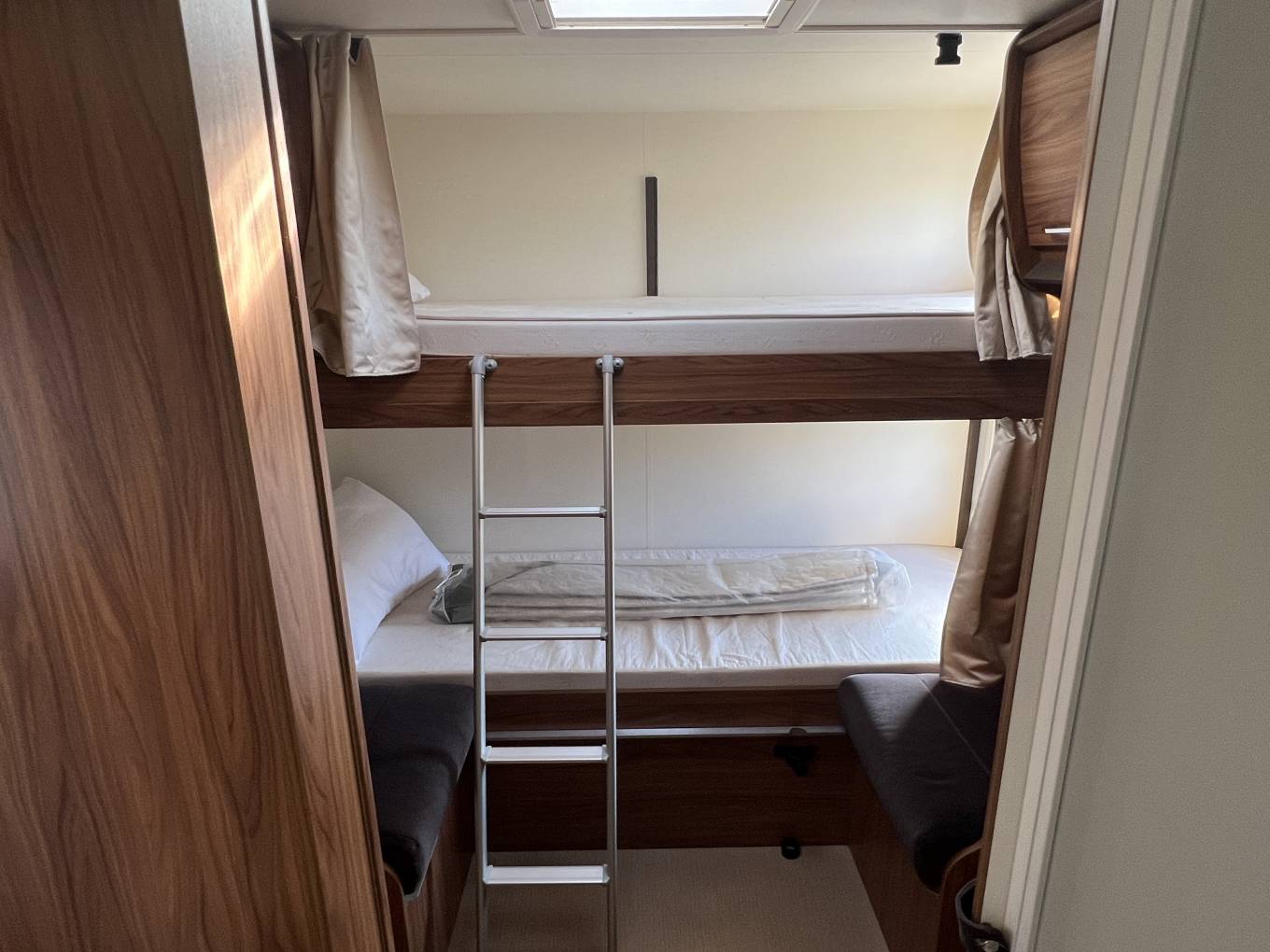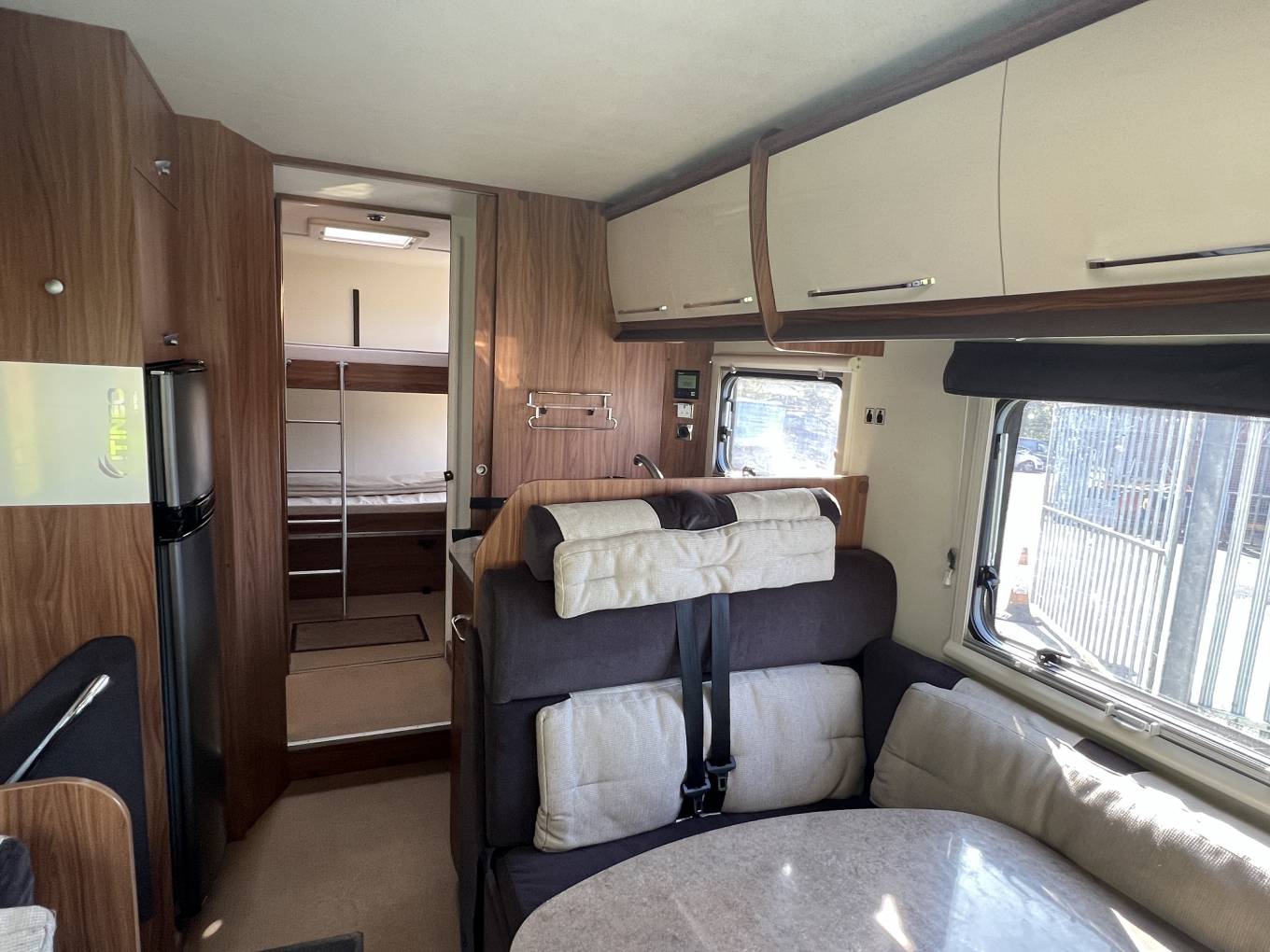 INTENEO SB740 A CLASS 5 BERTH MOTORHOME Left hand drive fitted with 5 travelling seats and sleeping for 5 in comfort. This well laid out vehicle is perfect for travelling Europe and has lots of room for a family with 2 bunks at the rear, a converted dinette and drop down overcab double bed. The washroom divides the main areas with twin sliding doors and can be used to create a full shower room, with separate end bunk room and main living arae either side. For daytime use the shower is separate from the toilet area for added flexibility. The kitchen has a tall fridge with separate freezer, sink with drainer and ample storage. The dinette/lounge area is generously proportioned and comfortably seat 6 guests. There is a garage located under the rear bunks which is accessible from the outside with ample room to carry additional gear for longer travels. Very useful sized motorhome for travels around the continent and fitted with solar panel and twin Gas-lo onboard LPG tanks. Sold with new MOT. Recent habitation check carried out. Viewing is available Monday to Friday only due to storage access and is located 5 minutes from Hereford centre. Part exchange and finance available.