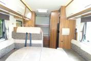 Sleeping arrangements are large drop down over cab double bed, bunk beds at rear and the sitting area converts into another large double bed or two single beds.
