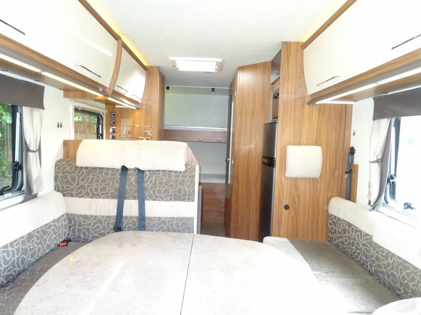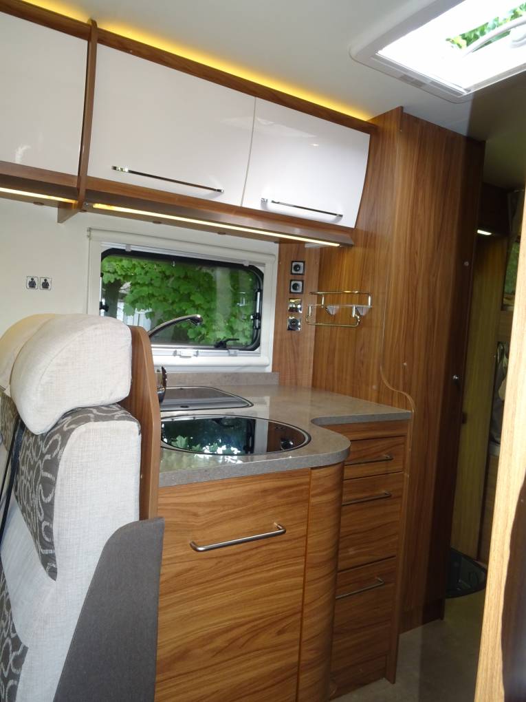 Large fridge and freezer, oven, grill and loads of storage under seats, drawers, overhead lockers and it also has an underfloor storage chamber.
