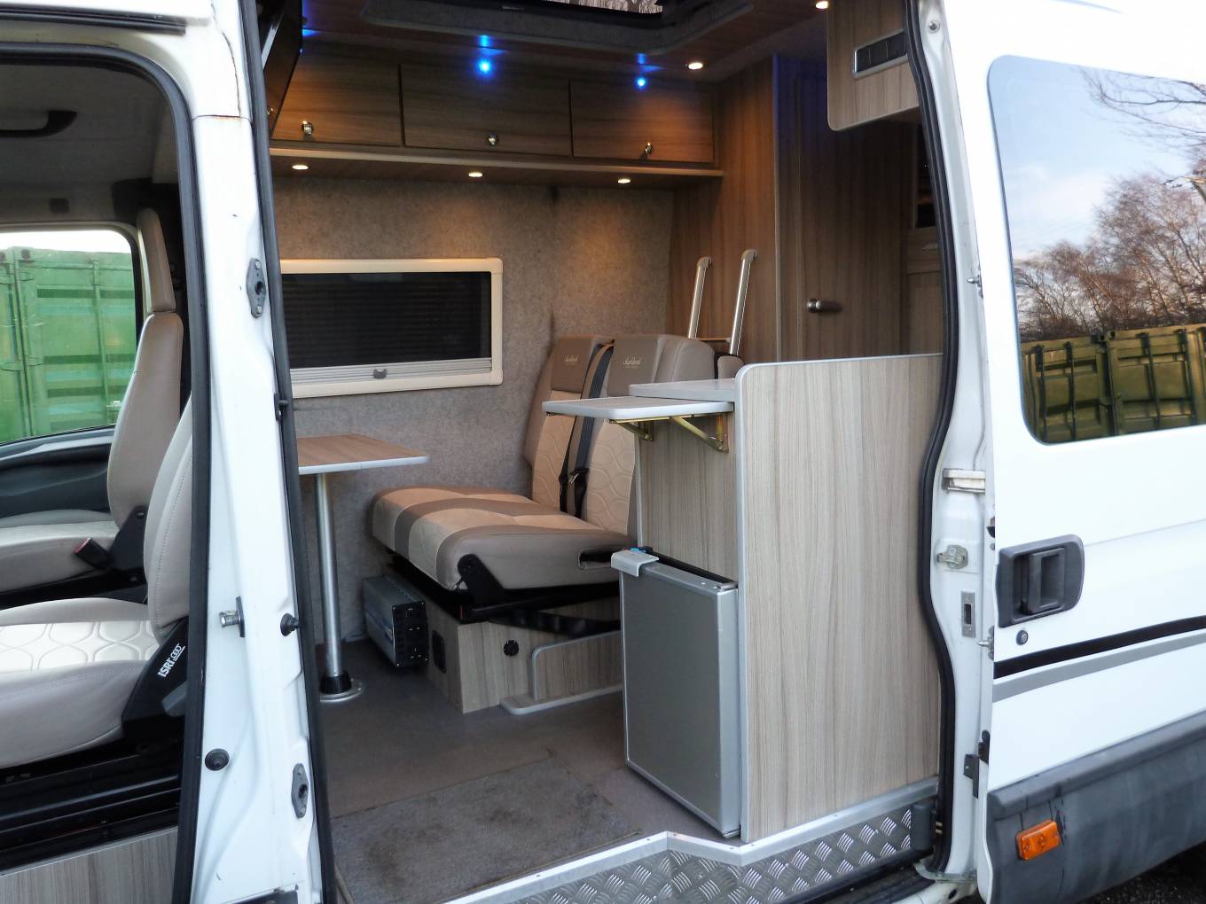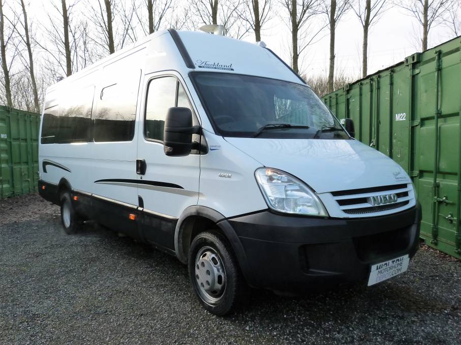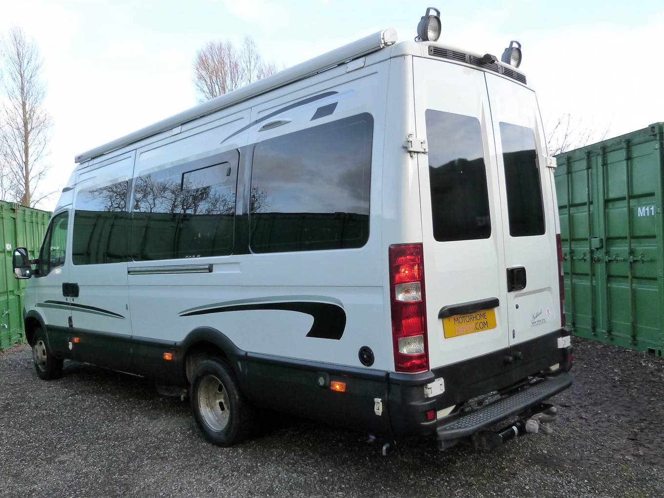 Call with any questions on 01423 609985. This 4 berth, campervan or racetruck, is a conversion based on an Iveco Spa 40C12 and was undertaken by the renown Auckland Race Trux and has a high specification finish. It is classified as a Motor Caravan on the V5 logbook. The large rear garage can carry 2 motorcycles or be used to carry family bikes and any other outdoor equipment. First registered in February 2009, it has travelled only 22,024 miles, which is shown in the bodywork and also the condition of the chassis, has the very reliable 2287cc diesel engine and is classified as MOT exempt, given it was a minibus, prior to the conversion. The large garage, holds 2 motorcycles, with lighting, anchor points, gas bottle and can be accessed, via the rear doors or from the habitation area. Internally at the rear, above the garage, is a double rear fixed bed, with plenty of cupboard storage. Coming down the steps, there is the toilet on the offside and opposite is the kitchen, equipped with a cooker, that has oven, grill, 3 gas burners, then a sink, fridge, electric socket and most usefully, a pop-up worktop by the habitation door. The dinette area has 2 RIB, forward facing seats, both with full seatbelts and converts into a large double bed. There is also a TV, Erbespacher diesel heating system and 600W inverter to power a jet wash, with 2 sockets in this part of the campervan Upfront, both seats swivel, there is 5 speed manual gearbox, radio/ CD and great view from the elevated driving position. It benefits from 2 leisure batteries, with the ability to add more, towbar, cameras for rear view and observation of the garage whilst driving and full length wind out canopy. A petrol generator is situated underneath, the new owner would need to recommission and there is A C1 licence is required to drive this campervan. It has GVW of 4200kg and is just under 6 metres long. An MOT can be included as part of the sale. It should be seen at the earliest opportunity and additional photos are available on request. It is situated in near Market Weighton, East Yorkshire. Part-Exchanges are welcomed on this vehicle, for further information and photos please call us on 01423 609985 quoting Reference 202174