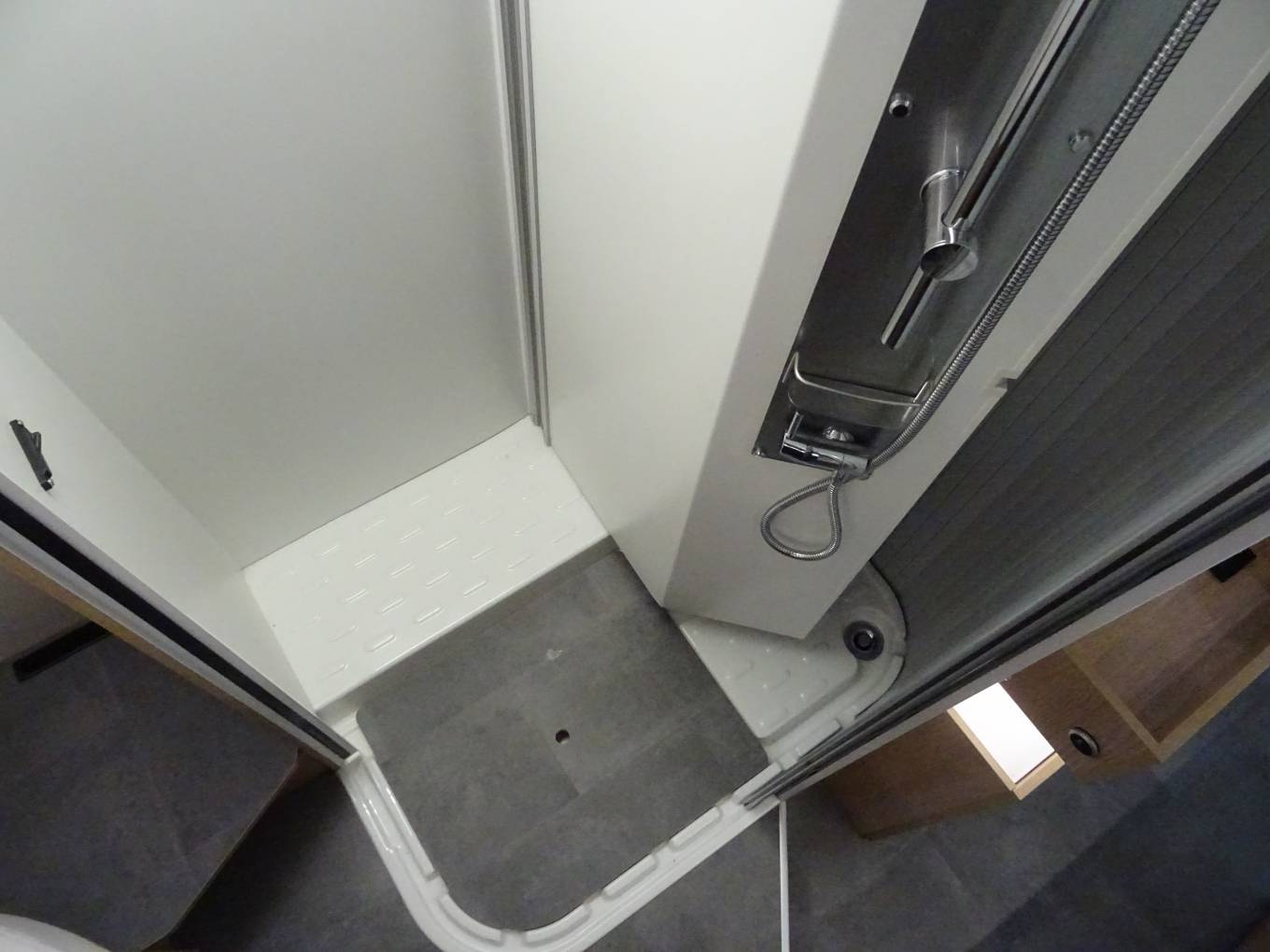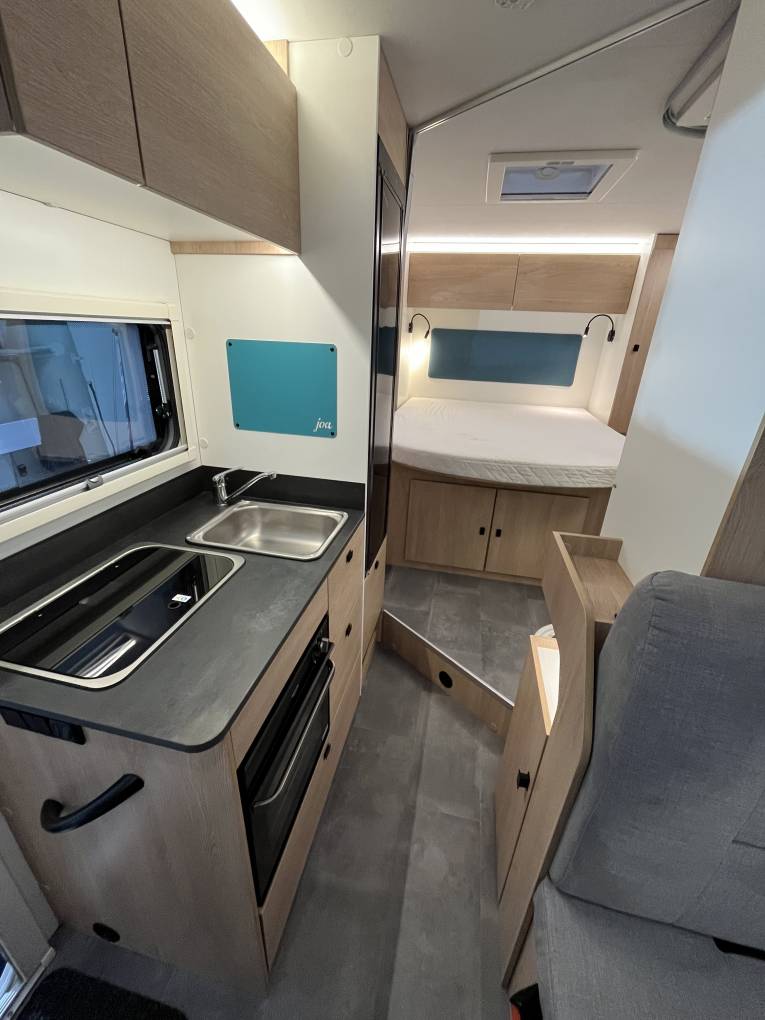 There is plenty of storage for all, with 2 wardrobes either side of the bed, an ingenious washroom with a moveable wall to ensure the toilet does not get wet. The kitchen benefits from and oven/ grill, gas hob and a good sized fridge for those long trips away.