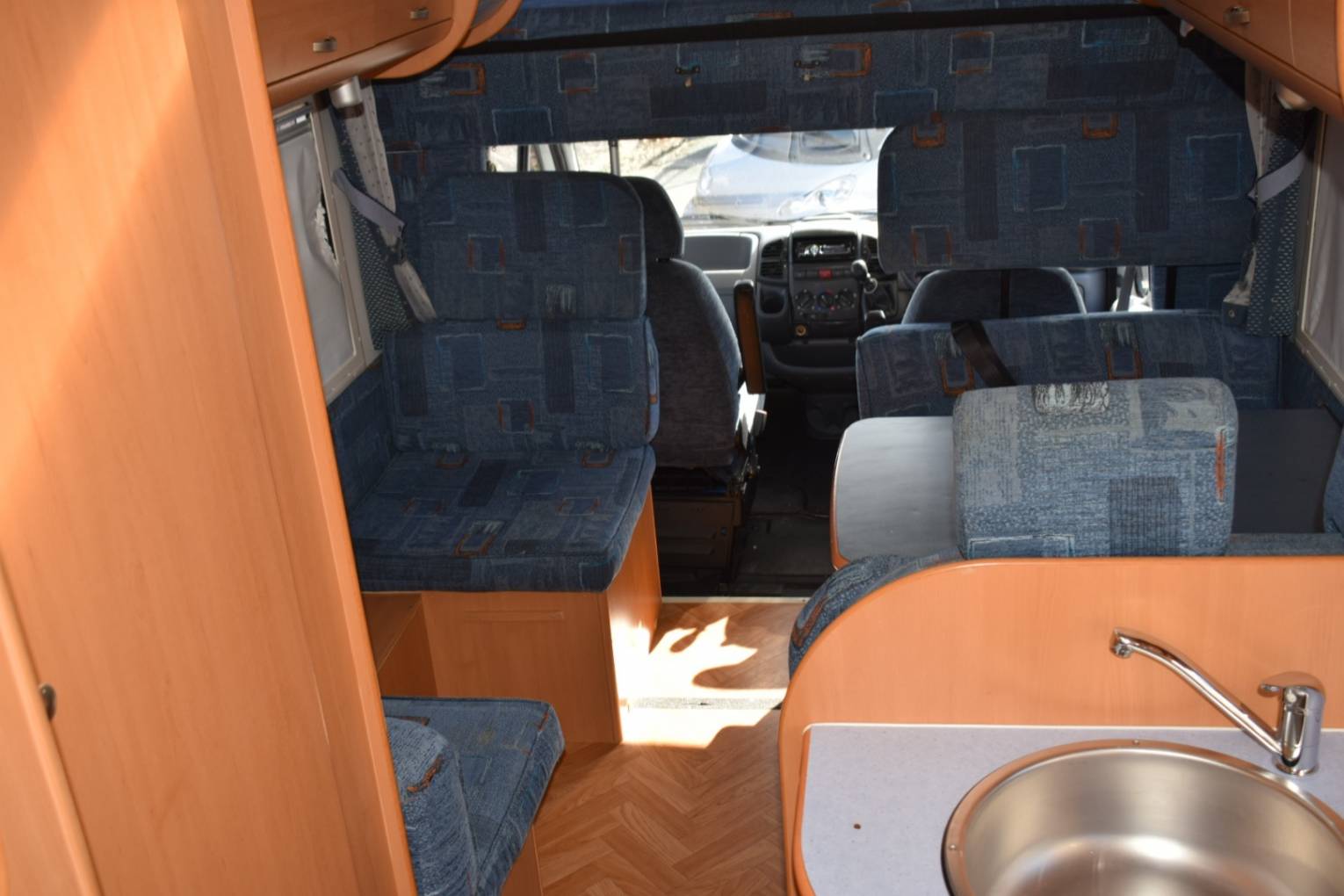 This Joint J365 has six seatbelts, sleeps seven, is 6.9m long, has a gross weight of 3400kg and is based on a Right Hand Drive 2.8 litre Fiat Ducato.