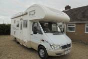 A six-berth motorhome built on a Mercedes chassis powered by a 2700cc diesel engine through an automatic gearbox.