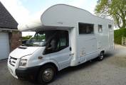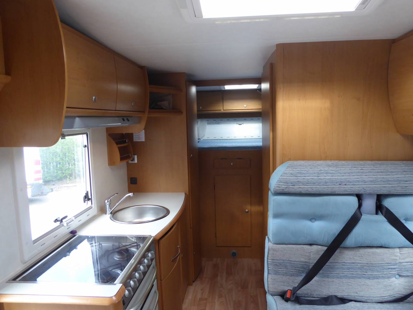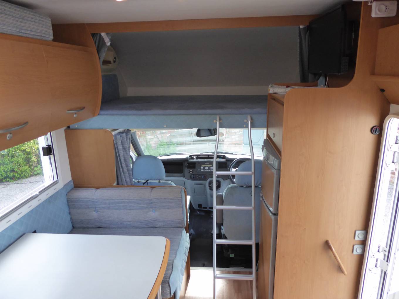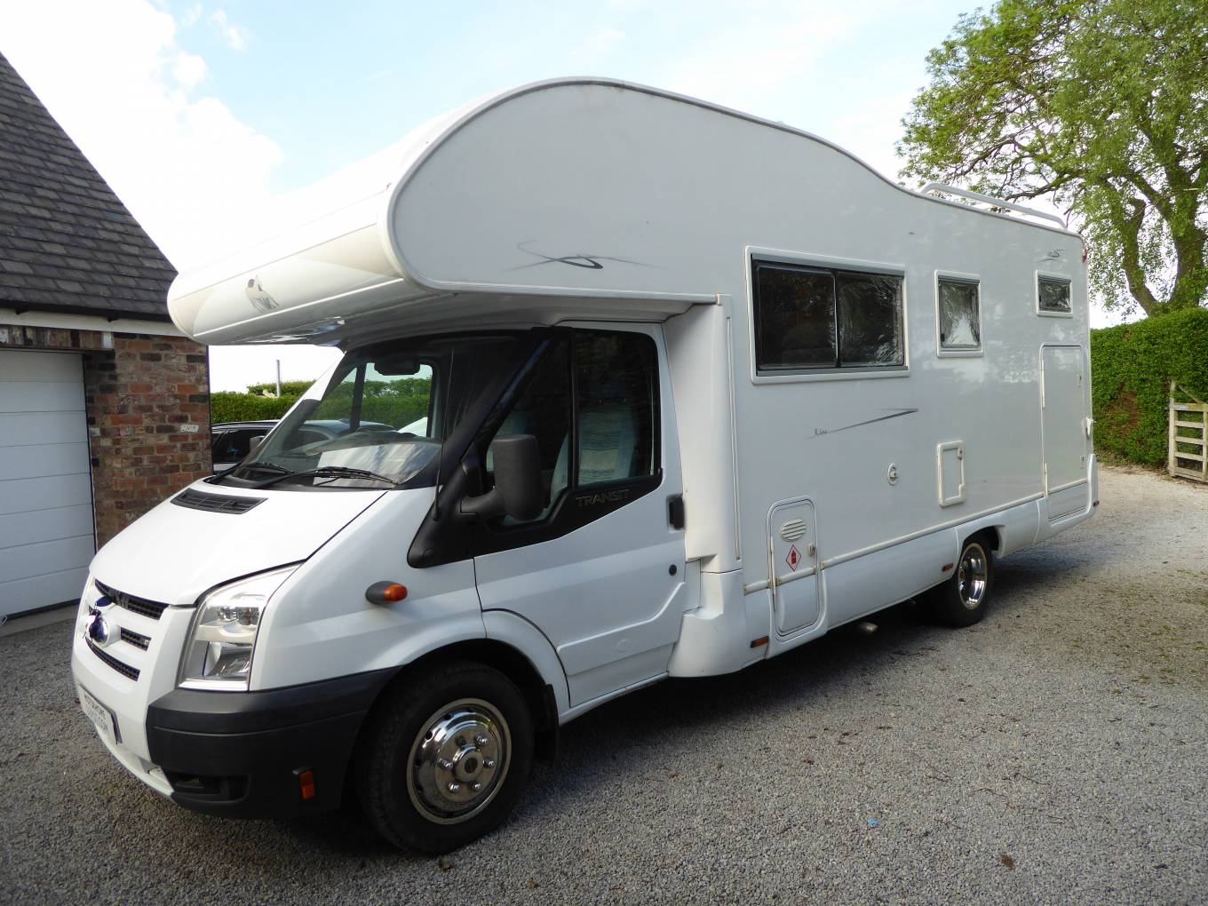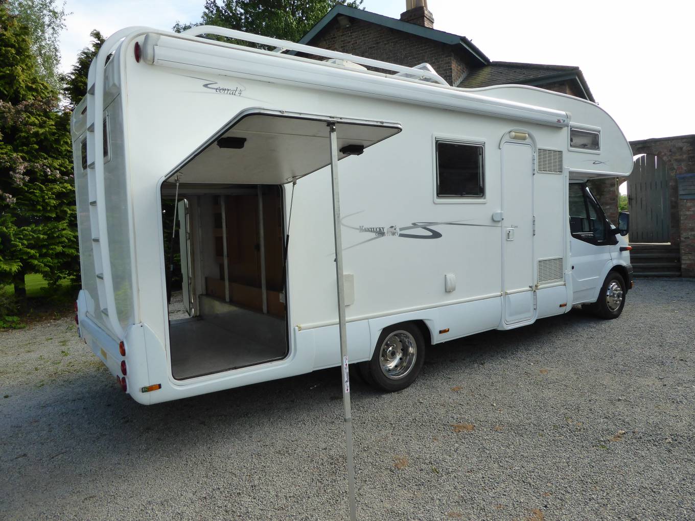 Call with any questions on 01423 609985. This coach-built Kentucky Corral 4 is based on a Ford Transit chassis and was first registered in March 2007, it has a 2402cc engine and 6-speed manual gearbox. It has been chipped to deliver 135bhp vs the standard 115bhp. The stand out features of this include a large rear garage, Trauma water heating system and Webasto central heating, the large fridge with separate freezer plus air suspension. Externally this motorhome has a reversing camera, awning/ canopy and a rear garage with an aperture opening of 33 inches x 50 inches and internal measurements of 35 inches x 80 inches. It currently houses 2 full sized motorbikes, which can be seen in the additional photos. Internally at the rear you will find a double rear fixed bed measuring 6ft 10 inches x 4ft 3inches, with garage access underneath and plenty of storage cupboards above. This area benefits from a vanity mirror at the side and a skylight above which makes this end of the motorhome light and airy. Also at the rear you will find the washroom which contains a sink, toilet and shower with screen. There is a privacy door that separates the bedroom and washroom at the rear from the main habitation area. The kitchen, has a cooker including oven, grill, 4 gas burners plus sink, large fridge with separate freezer and plenty of storage space above and below the worktops. The dinette comfortably seats 4 people and includes 2 full seatbelts, it also creates a bed measuring 6ft 3inches x 3ft. In the cab, you will find a radio/CD player, 6-speed manual gearbox and the reversing camera screen. This motorhome has an over cab bed measuring 6ft 8inches x 5ft which can lift easily to allow more head room when sitting in the cab area. Overall this motorhome sleeps 6 people with 4 full seatbelts for travelling, there are plenty of windows throughout which makes this motorhome very light and airy and the upholstery is in good condition. It benefits from a Webasto diesel heater for the habitation and Trauma hot water heater. The mileage is high, however the fixtures and fittings are as you would expect for as vehicle of 2007. This motorhome should be seen at the earliest opportunity and additional photos are available on request. Part-Exchanges are welcomed on this vehicle, for further information and photos please call us on 01423 609985 quoting Reference 13099.