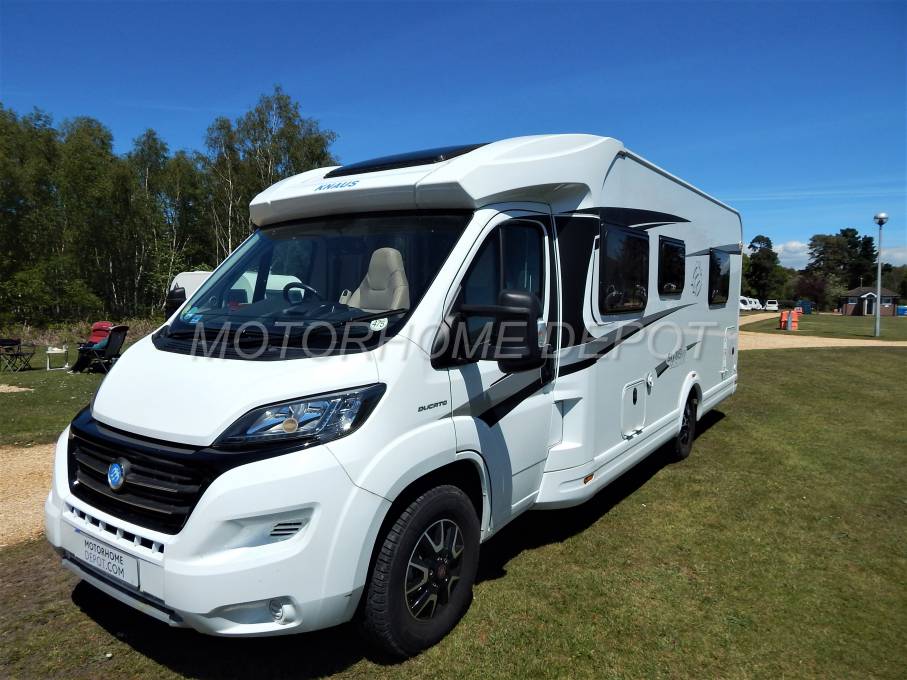 Knaus is one of Germanies most respected motorhome manufacturers & the Sky Ti 700 MX is a great example of its work. Based on the ever popular Fiat Ducato chassis with the 2.3L 150 bhp multijet diesel engine. Comformatic 6 speed automatic gearbox, it has had one owner from new & covered only 10,876 miles, it comes with an immaculate service history having had all its wok carried out by Southdowns in Portsmouth last service & Hab check 07/20 it is booked for both on the 14/07/21. The Cab benefits from: Cruise control; driver and passenger airbags, Cab air conditioning, electric front windows, electric mirrors, factory head unit with navigation & Bluetooth phone and streaming; multi-function steering wheel; 2 x rear view camera screens; Central locking; Alloy wheels.