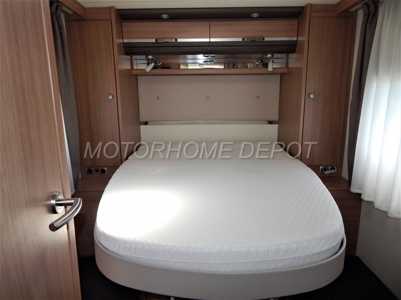 Finally to the rear is the large bedroom with reclining Island bed, half sized hanging wardrobes either side and storage at the foot of the bed. There is a TV point at the foot of the bed, the TV is not included in the sale.