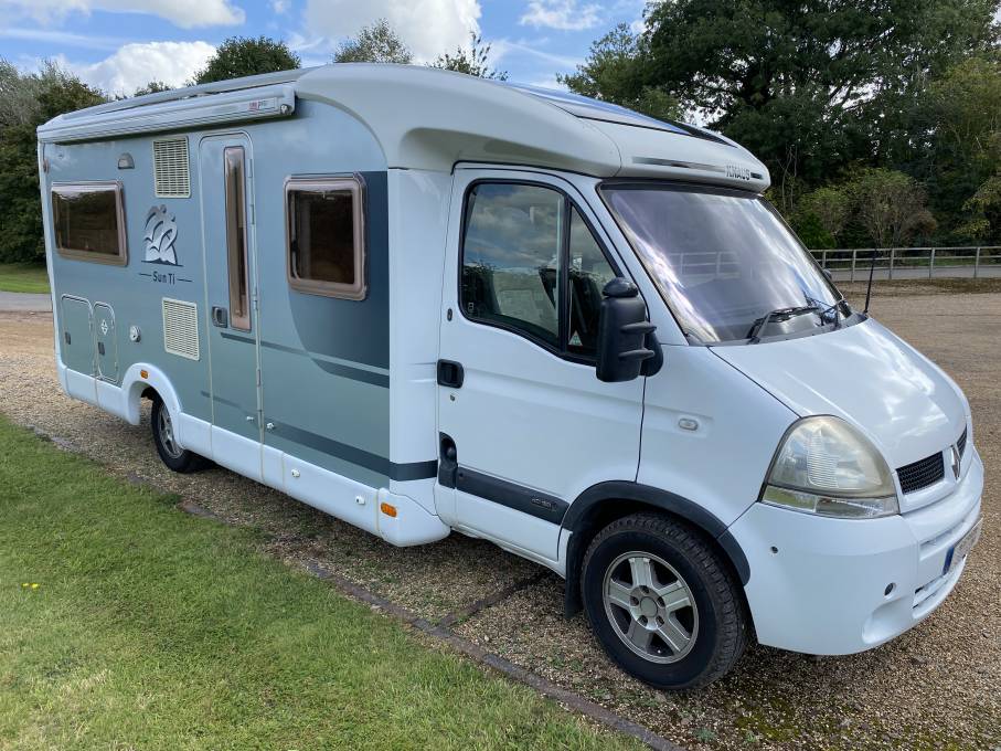 LOCATED IN WARWICKSHIRE, this is a well-cared for example of the popular Knaus Sun Ti 650 MF, first registered in June 2005, it is 4 berth with 4 travelling belts, low profile motorhome, with the much sort after rear fixed bed layout. Based on a Renault dci 2.5 litre diesel engine and chassis with a 6 speed manual gearbox. It has done 93,108 miles, with a good quantity of service paperwork, was last serviced at 89,737 miles, MOT until February 2024 and last clear habitation check was completed in October 2022.