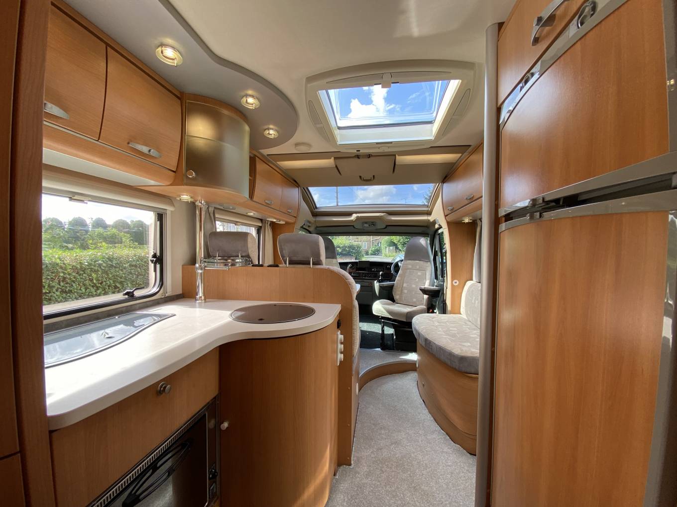 windows on either side of the lounge and an electrically operated roof light