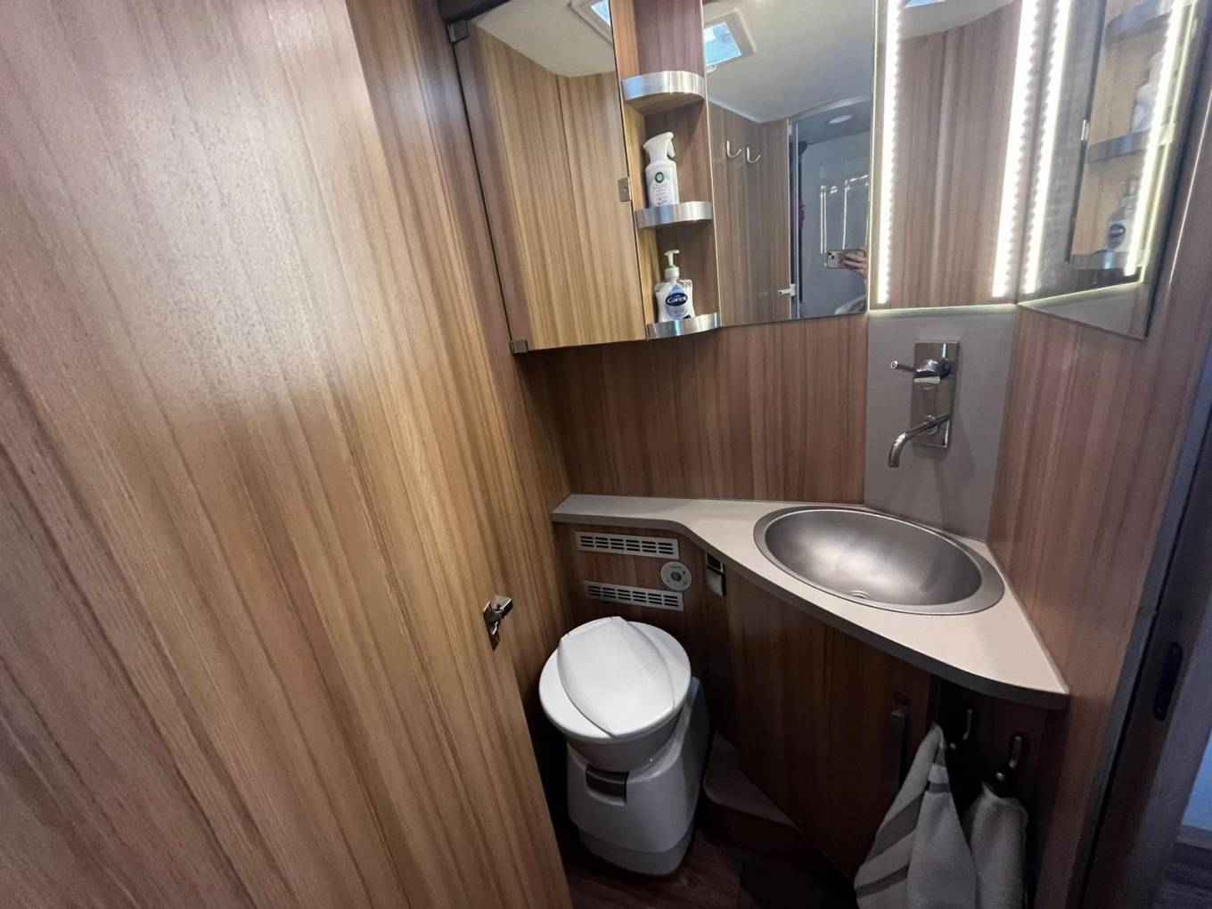 the cab, so you can freshen up in private. The washroom houses the cassette
