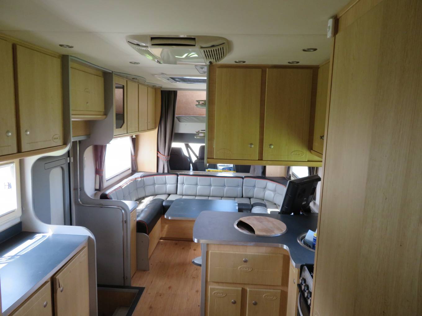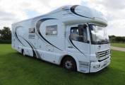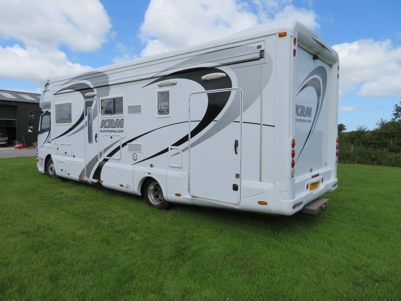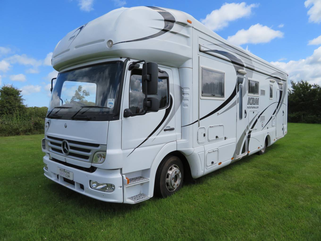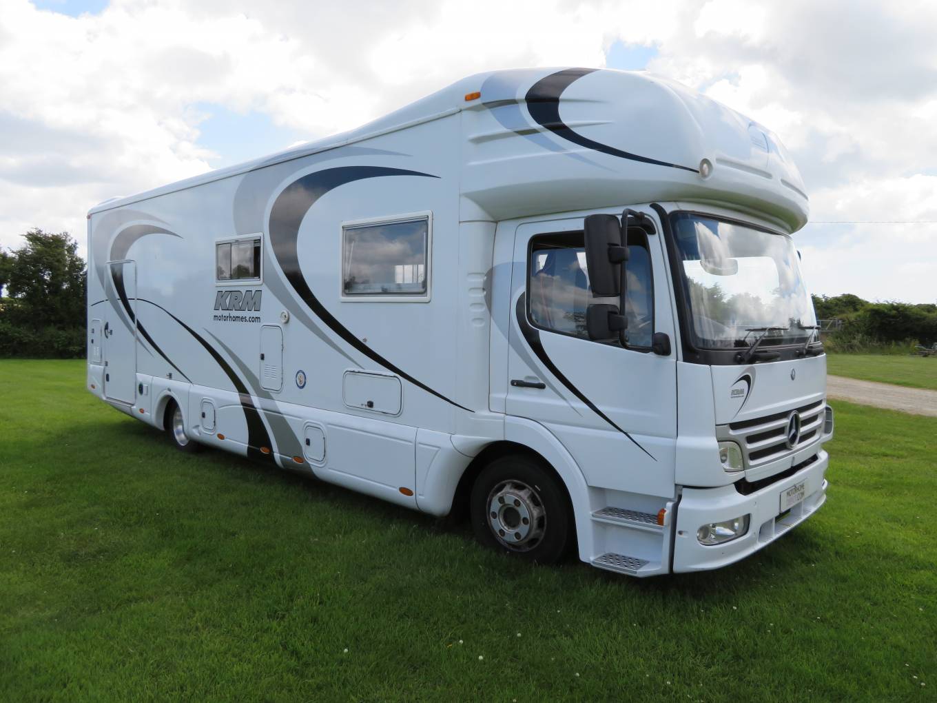 Motorhome Depot present a stunning custom KRM Racehome, This KRM is based on a Mercedes Chassis 7.5T with 6.3700cc engine and triptronic gearbox. 55,000KM. It has a full service history and MOT until January 2019 and has just had Six New Tyres. This KRM Racehome has a great layout starting a the rear we have a Large garage with large doors either side as well as a door leading to the habitation area,Above the garage is a large double bed with TV,Moving forward you have a good sized washroom with basin and WC,Opposite is a large separate shower, then you come a very well laid out kitchen area with full size fridge and cooker as well as sink,hob and lots of storage, opposite the kitchen is the main habitation door, you then have a fantastic lounge relaxation area with custom leather trim with TV ,surround sound and even a play station, this area also converts to a large bed and finally there is another large double over the cab,in the cab area again you have three custom leather seats. This van has a huge specification which includes- Generator Telair 2500 - petrol. A/C in cab. Separate habitation roof mounted AC. Alde wet central heating. 3 televisions, 1 by seating, one at the over garage bed at the back, one outside. Satellite disc Sony playstation. Sound system and CD player, can also plug in an iPod. 5 leisure batteries. Inverter. 2 new gas bottles. Air Compressor. Jet Wash unit. Air suspension. Self levelling system. Heavy duty tow bar. Awning, manual wind out, full length of body. Plus has a full add on panels and supports to make a large outside room. This really does need to be seen to be appreciated. BAD BITS- the hinges on the habitation door and a few others need replacing Not a big job. Please call Aled on 01248 614028 for further information and a full photo file.