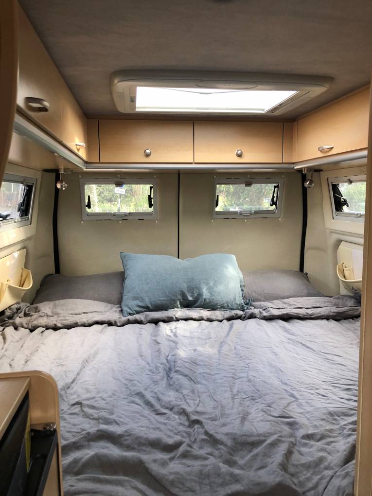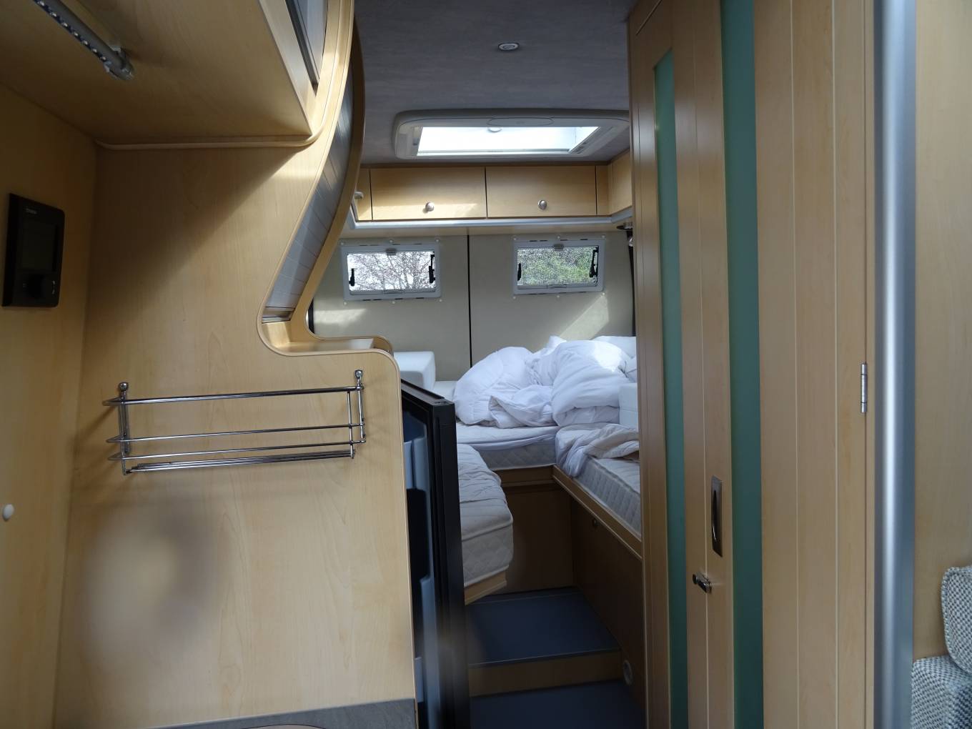 This van is a 3 berth, fixed king bed/two singles plus the dinette converts to a nice size single, plus the current owners have put a quality mattress topper into the storage above the cab, which gives a berth that a small child can use.