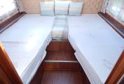 Bedroom consists of fixed twin single beds arrangement that recline for comfort while reading in bed. Hanging space below which can be accessed from underneath or from the top. Superior mattress and spring design for comfort.